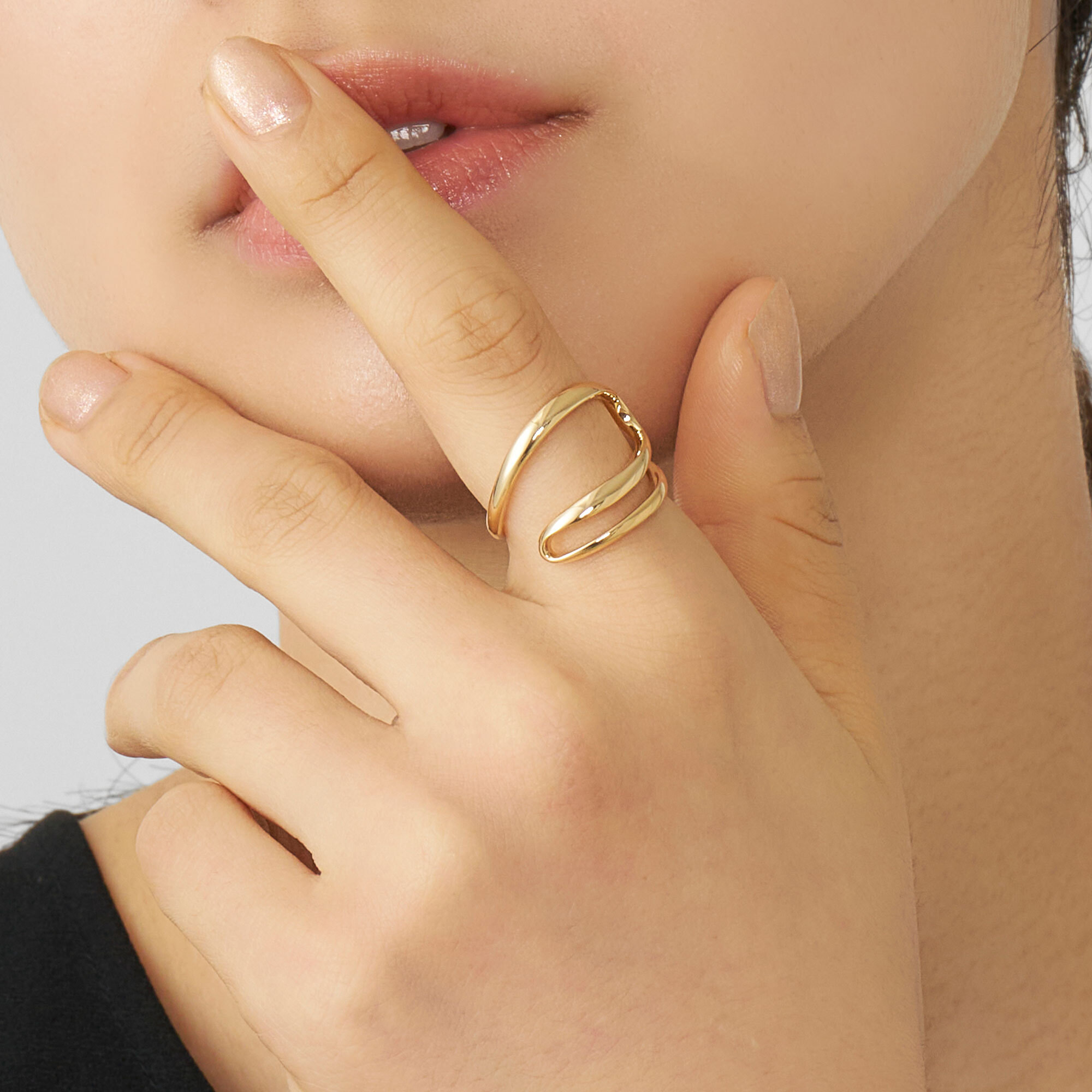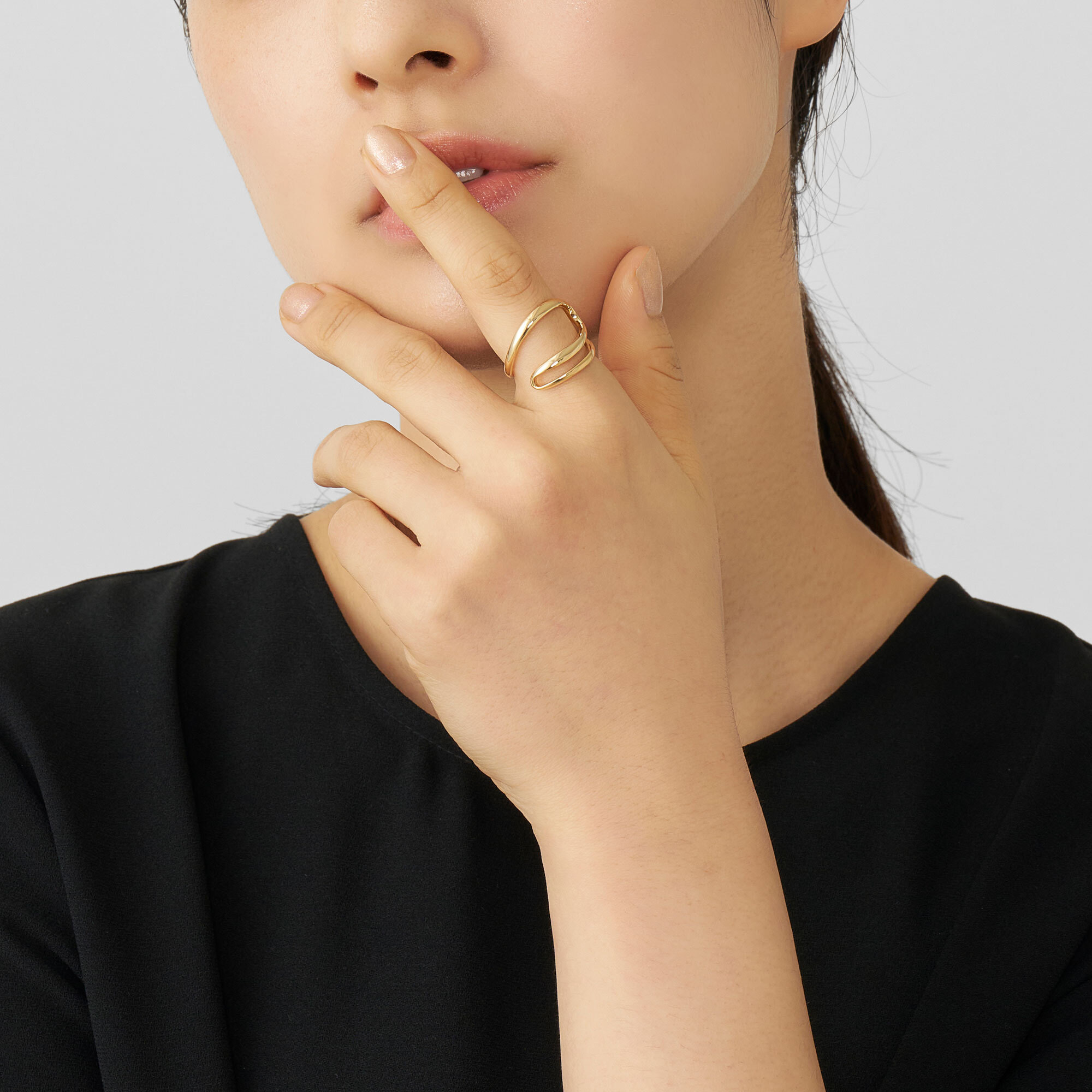 大きく開かれた空間をまとうような、軽やかで存在感あるフォルムが印象的なリング。