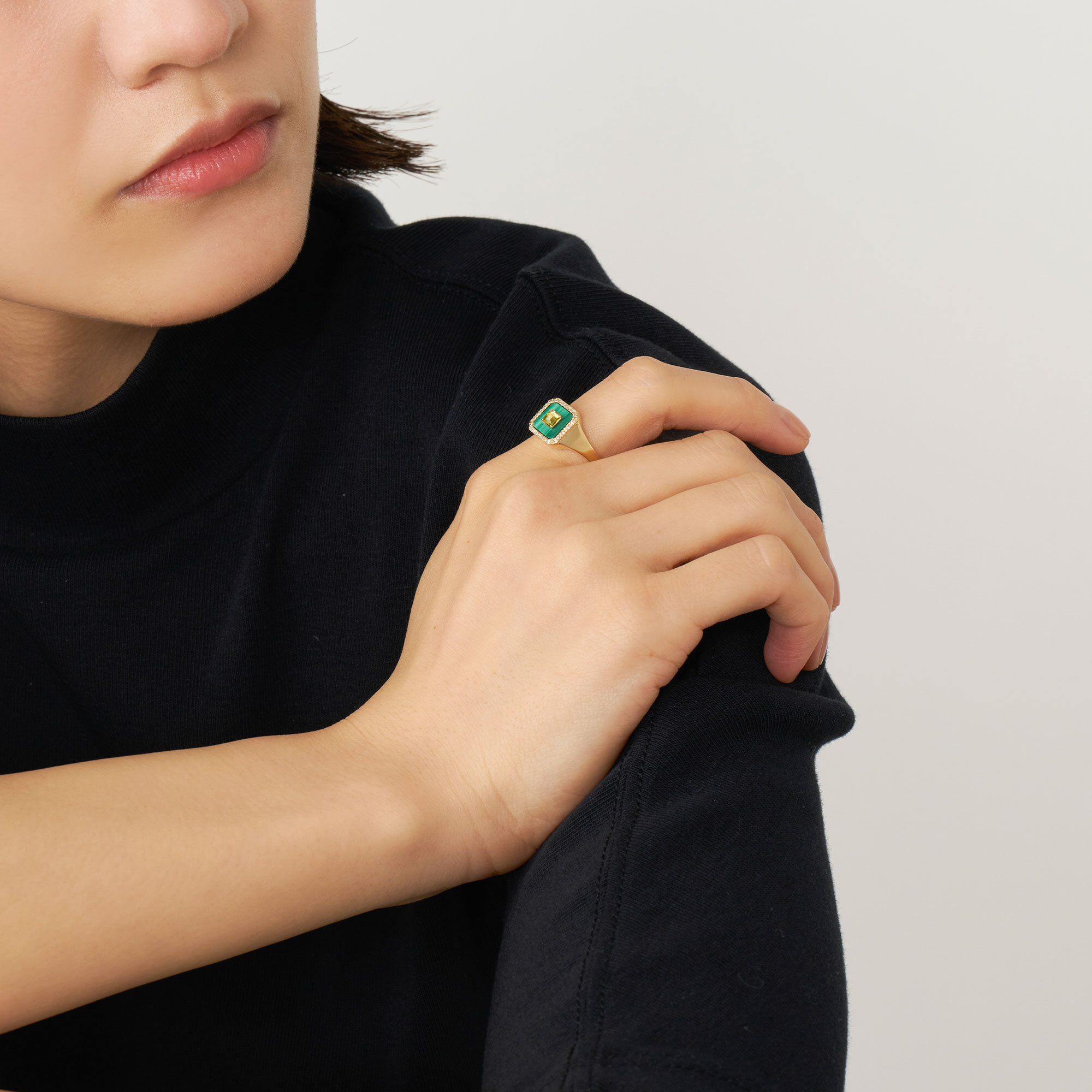 深い森のようなグリーンのリングは、手元に洗練された色彩を放ちます。