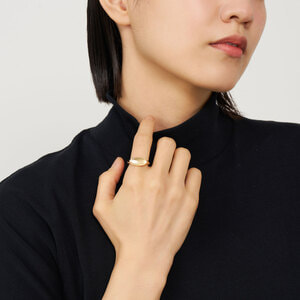 中央のオーバルシェイプを窪ませた変化のある光沢が、シンプルなシルエットに個性を与えています。