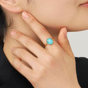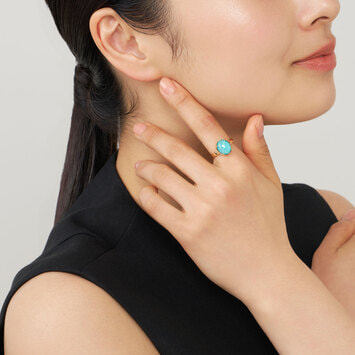 遠浅の海の色を思わせるカラーストーンが、手元にみずみずしい印象をまとわせるリング。
