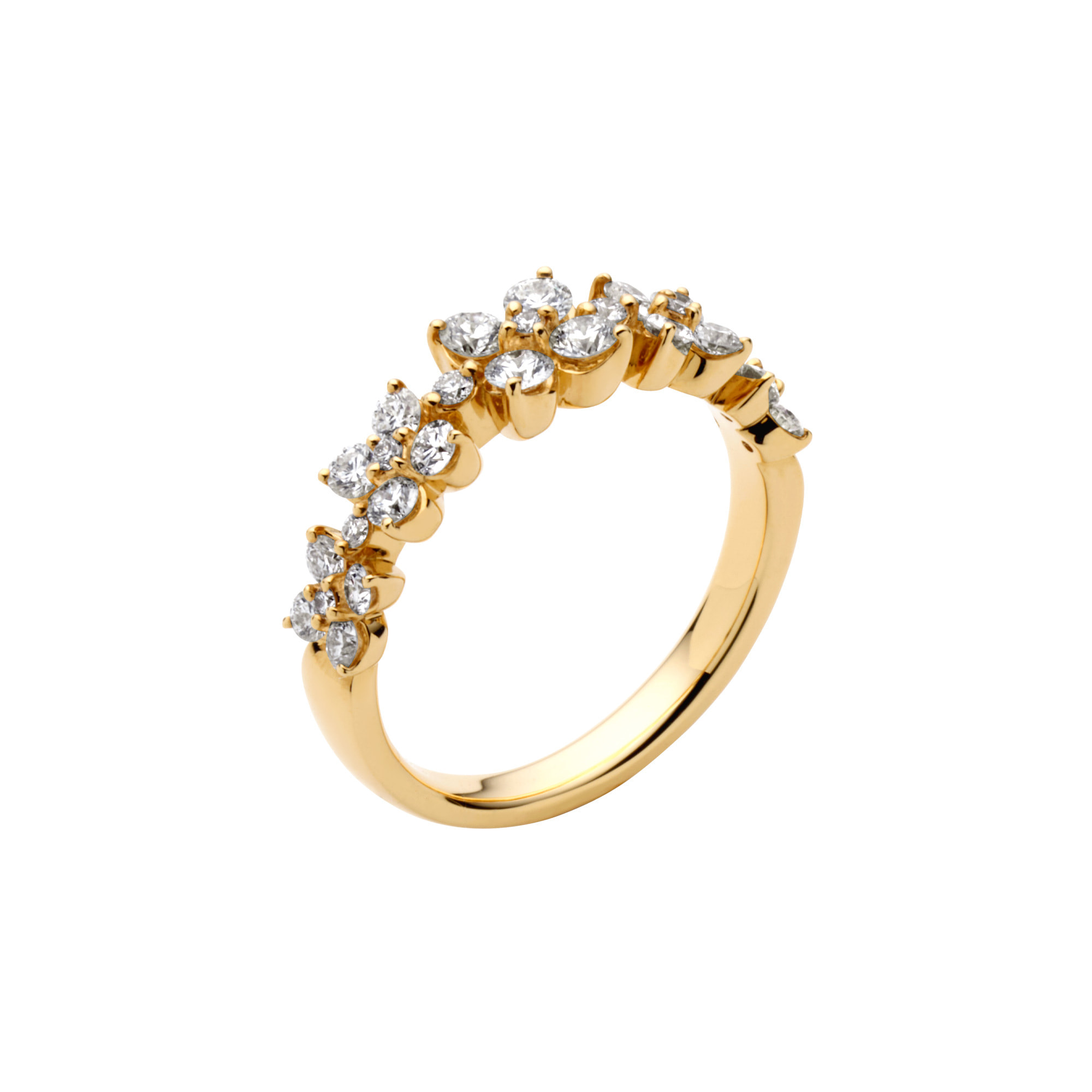 可憐な印象のモチーフながらも、量感のあるイエローゴールドとダイヤモンドのまばゆい輝きで、大人に相応しい上品さと洗練を備えます。