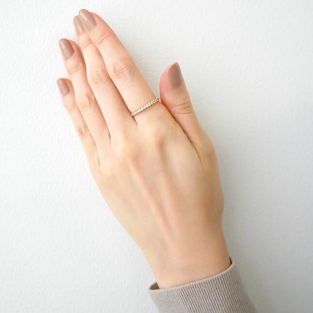 ダイヤモンド本来の透明感と、繊細なきらめきが魅力的なハーフエタニティリング。