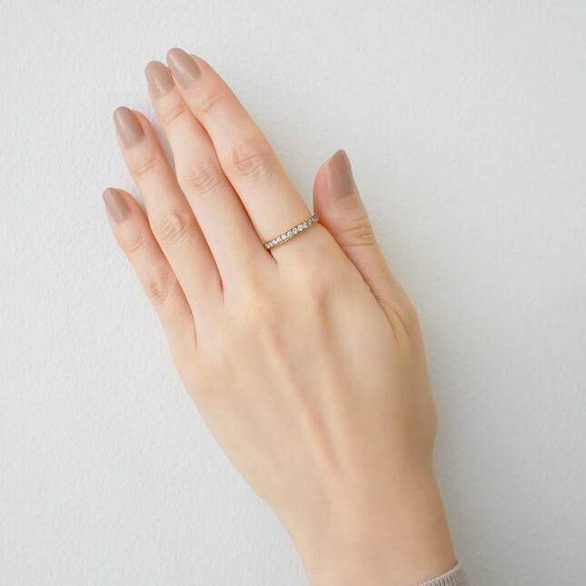 ダイヤモンド本来の透明感と、繊細なきらめきが魅力的なハーフエタニティリング。