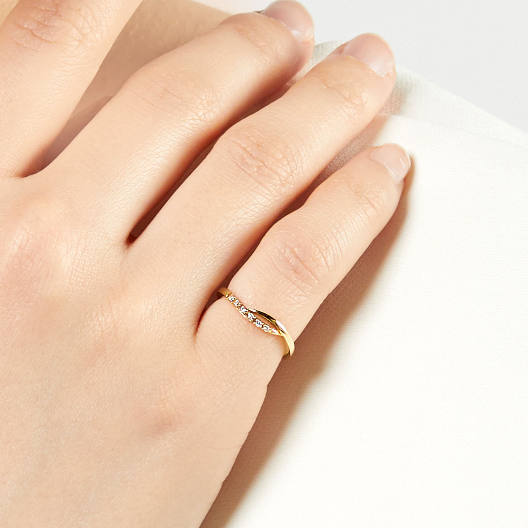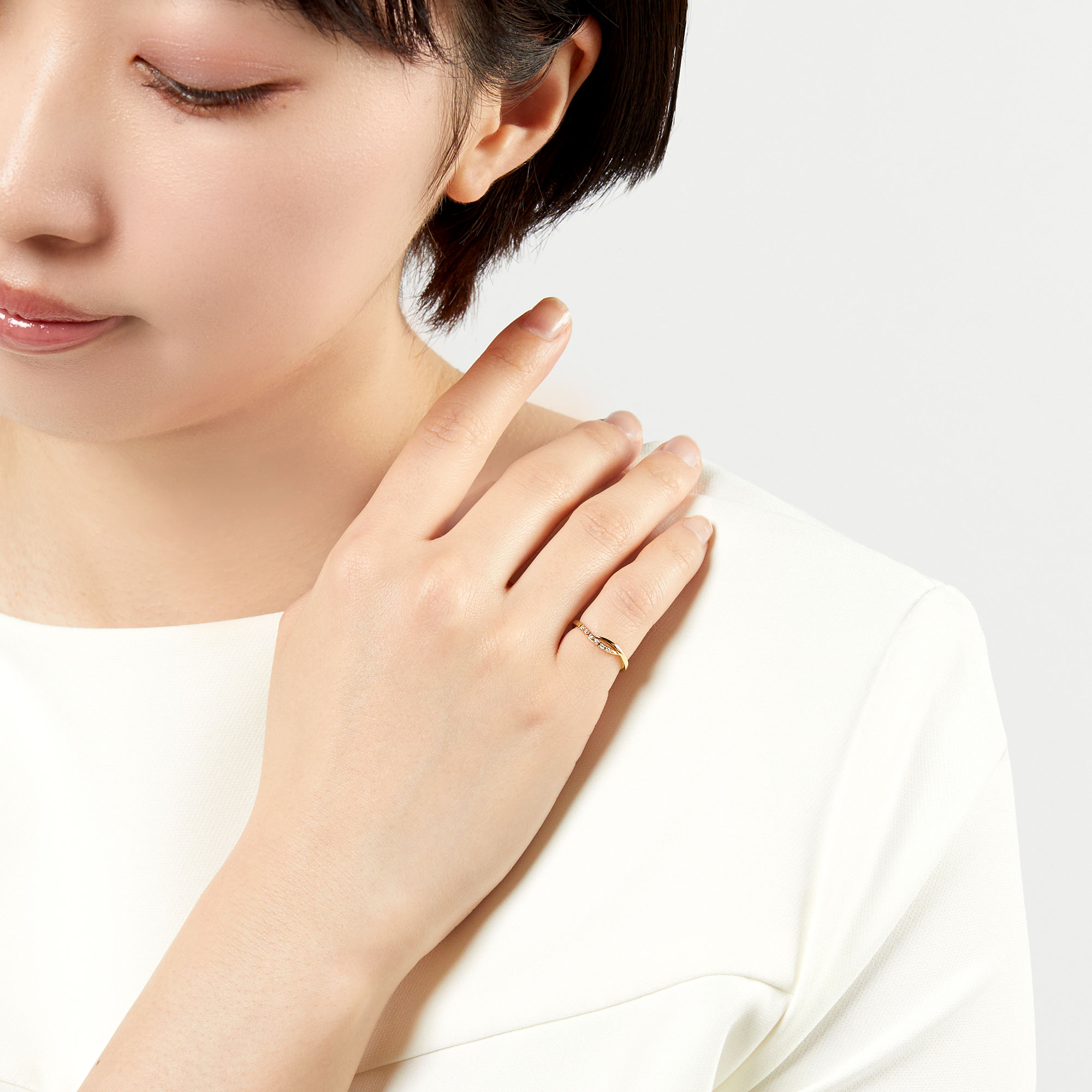 ダイヤモンドのきらめきとイエローゴールドのつややかなラインが美しいピンキーリング。