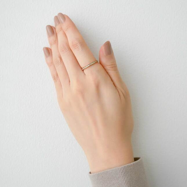 ダイヤモンド本来の透明感と、繊細なきらめきが魅力的なハーフエタニティリング。