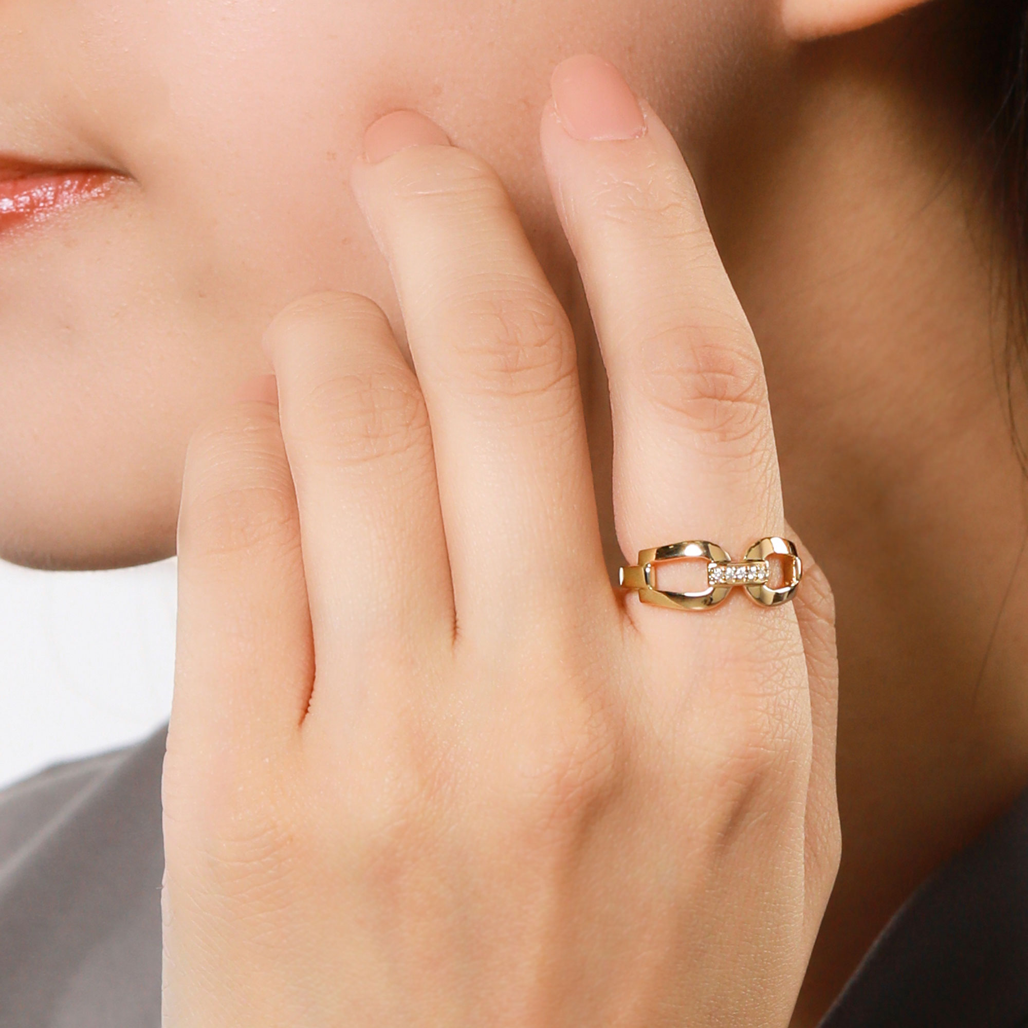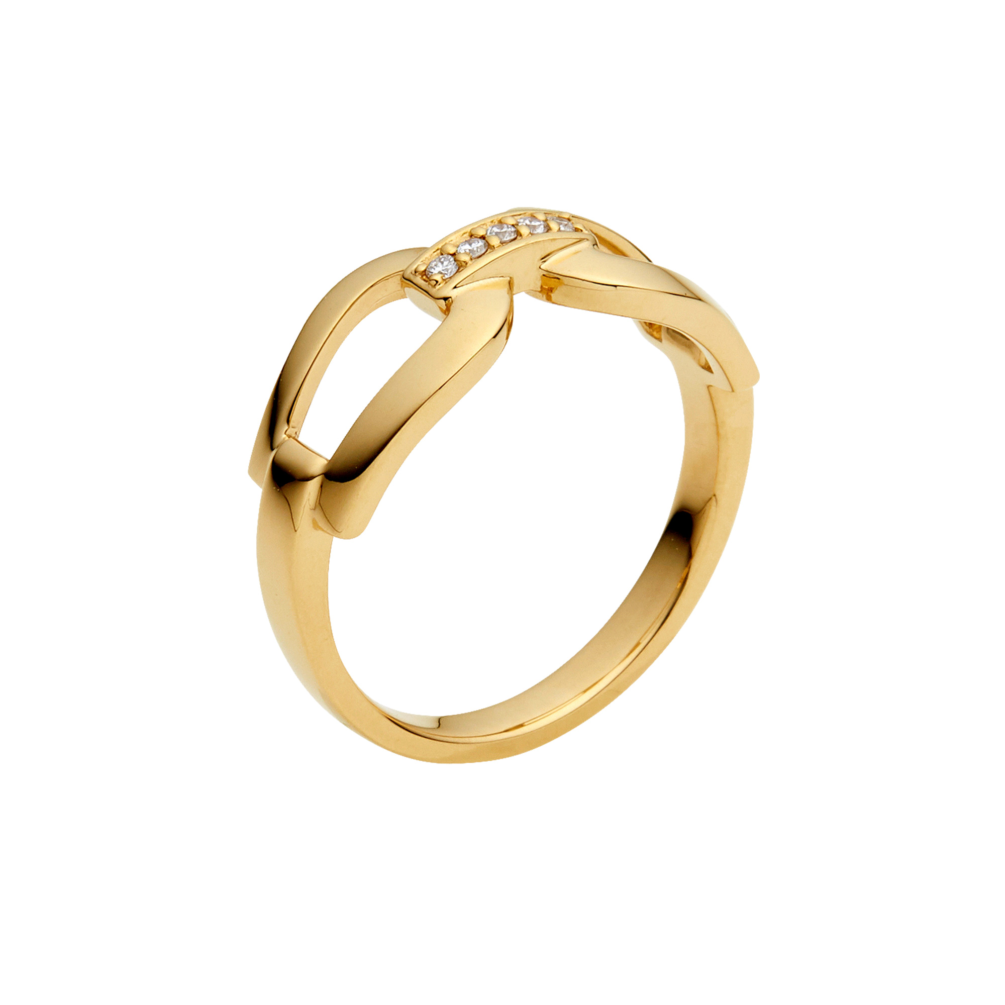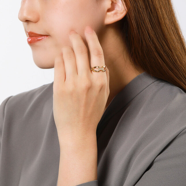 定番の馬蹄モチーフを、エレガントなムードにアレンジしたリング。