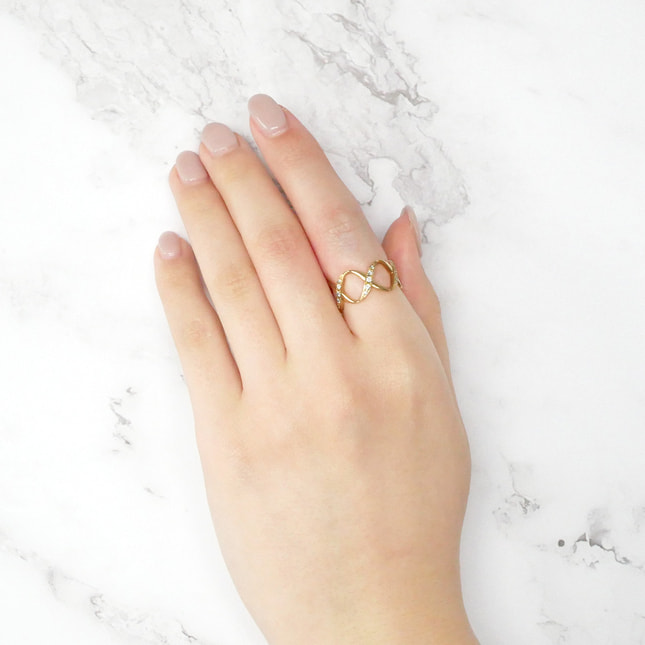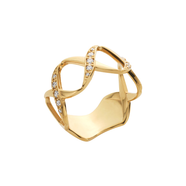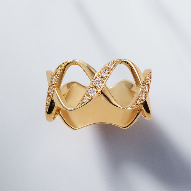 柔らかなラインで描かれた"X"が5つ連なる、グラフィカルなフォルムのリング。