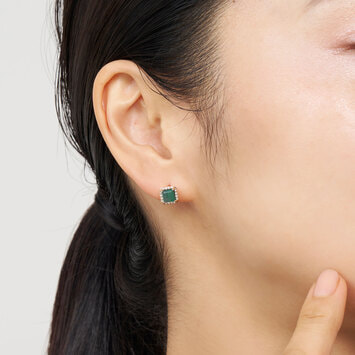 マラカイトとグレームーンストーンを重ね合わせた、柔らかな雰囲気を漂わせるダークグリーンカラーが印象的なピアス。滲んだような縞模様に穏やかでシックなムードが漂います。