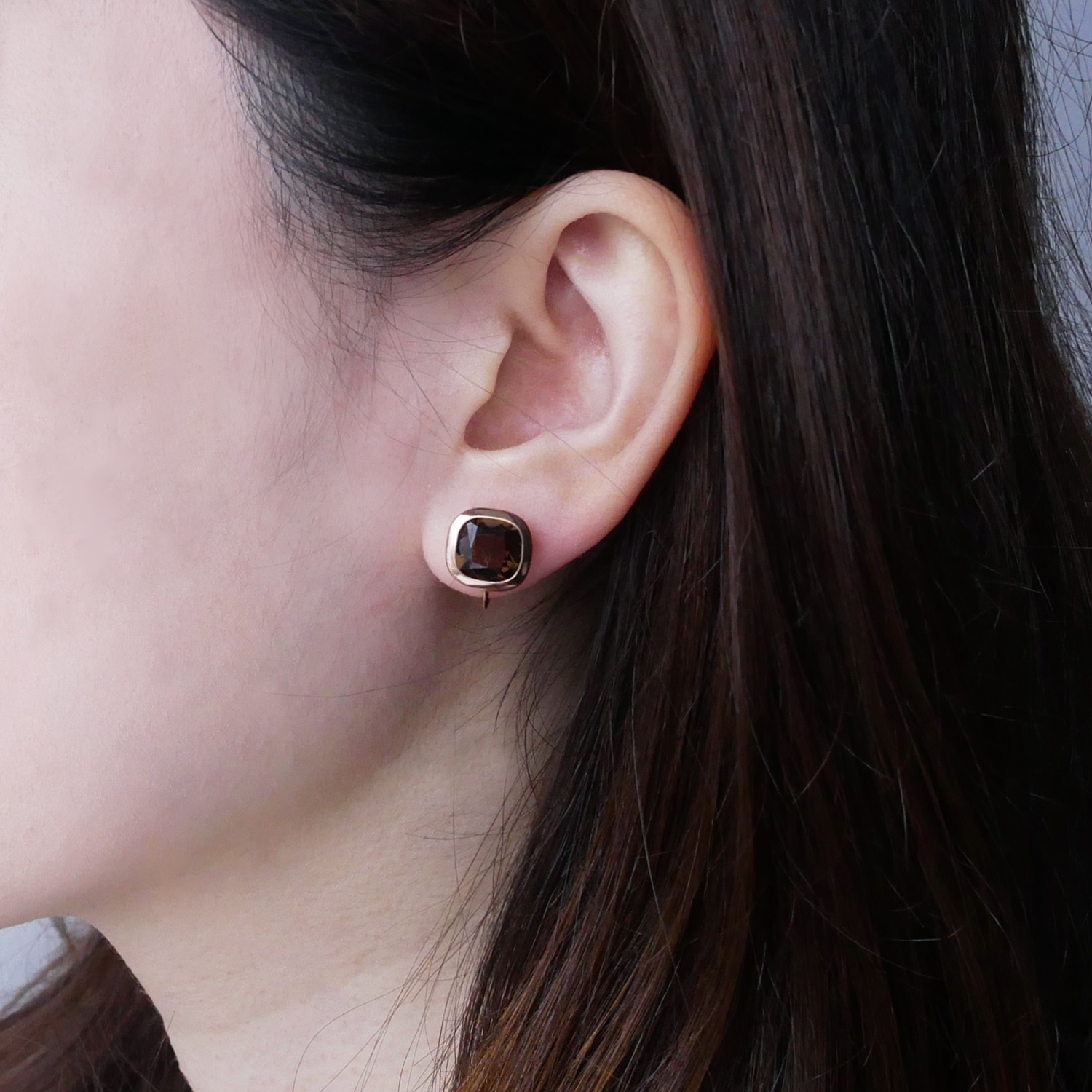スモーキークォーツの深い色味と美しい透明感が、大人の女性のスタイリングに上品な艶をもたらします。
