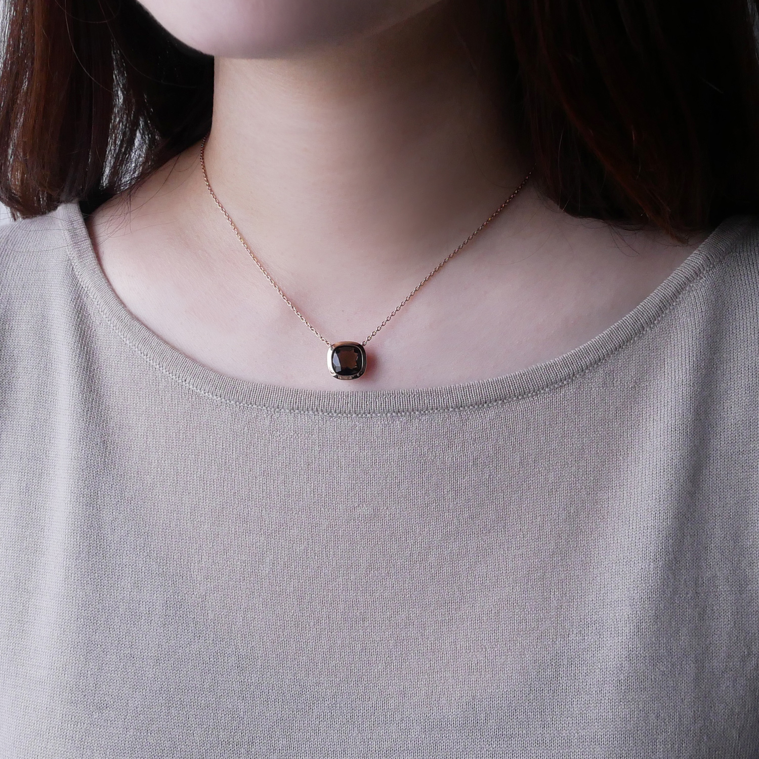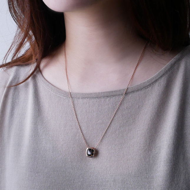 深いアロマが柔らかく広がり、静かに漂うイメージを、あたたかな色味のピンクゴールドとコーヒーを思わせるカラーのスモーキークォーツ で表現しています。