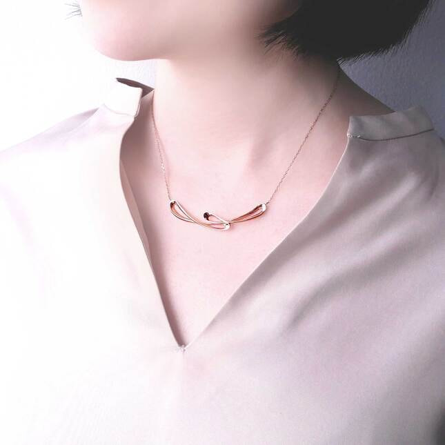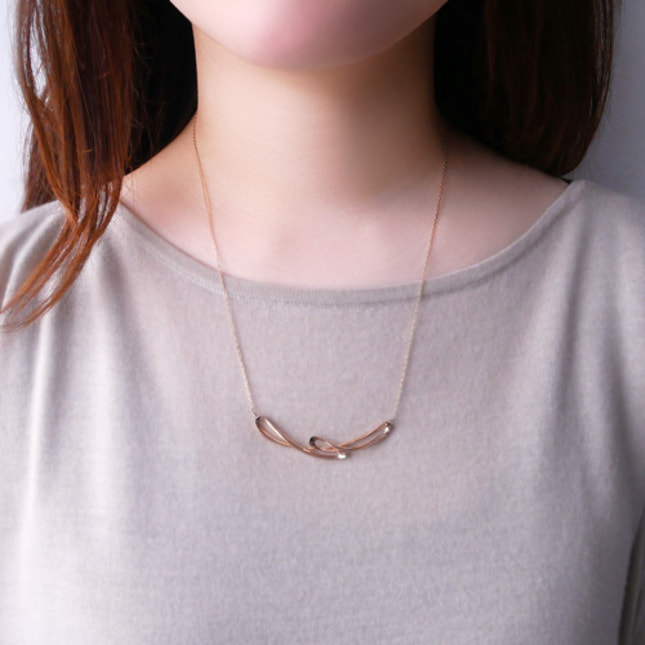 深いアロマが柔らかく広がり、静かに漂うイメージを、あたたかな色味のピンクゴールドの曲線で描き出します。