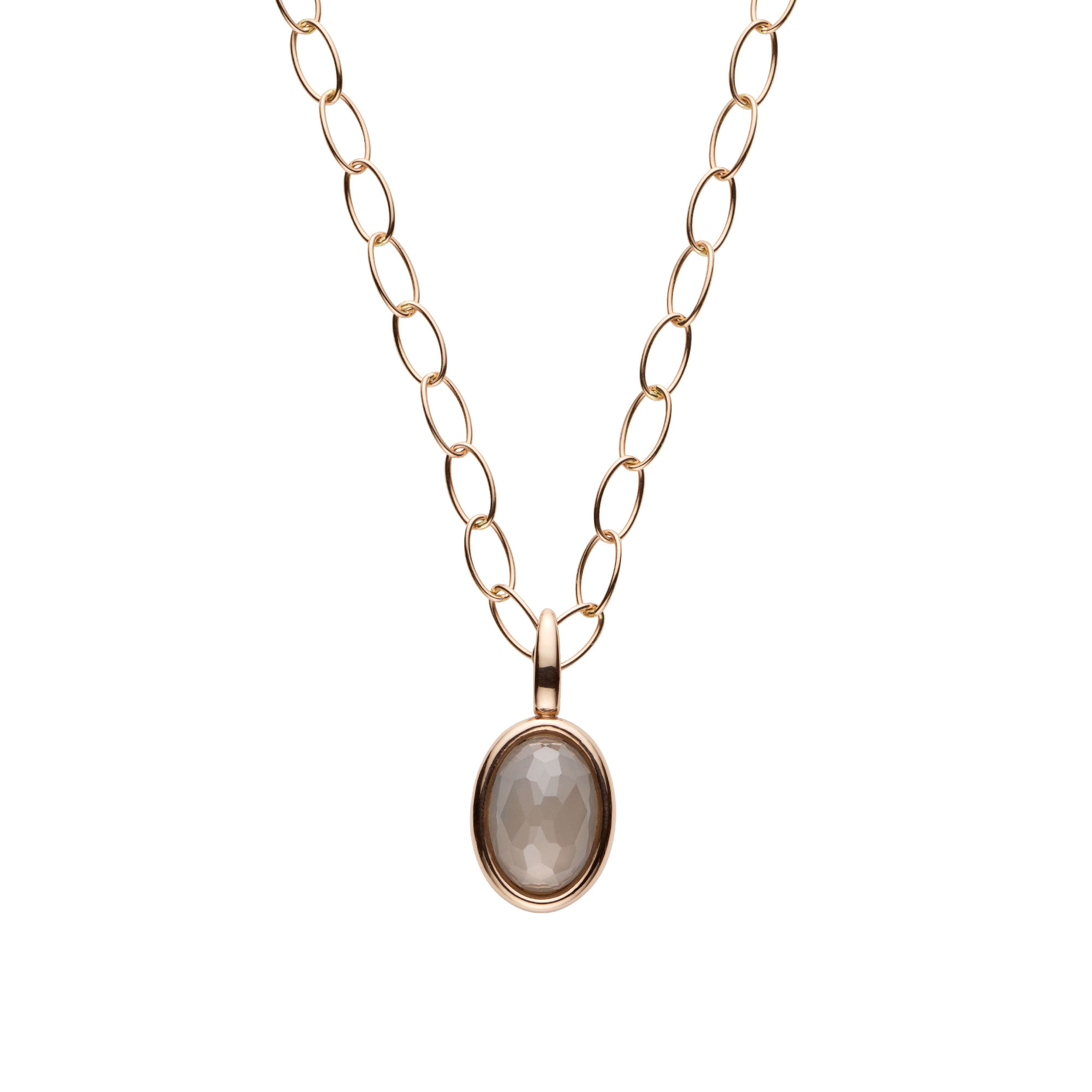 シックな色合いと落ち着いた質感のグレームーンストーンにはジュビリーカットを施し、きらめきをプラス。