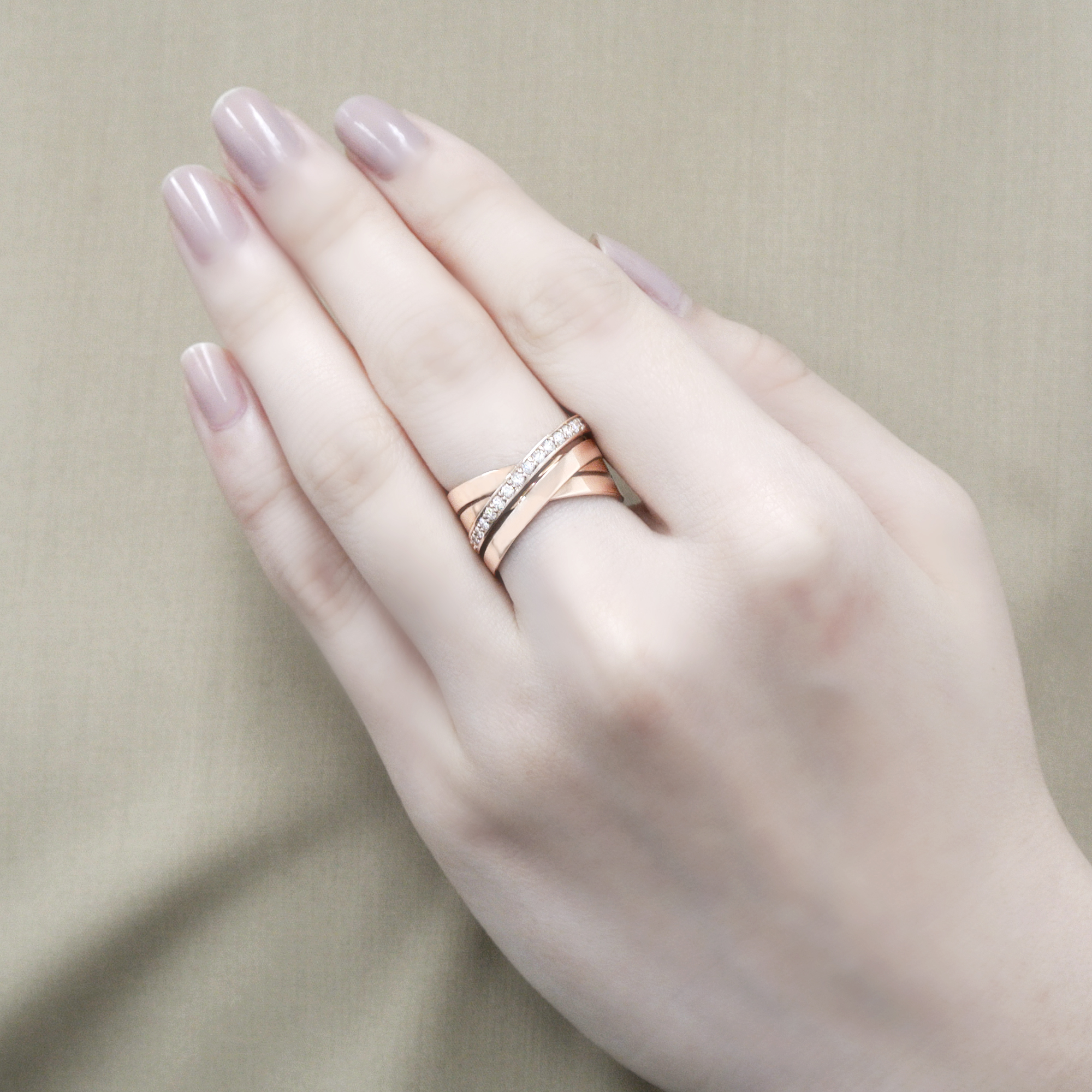 右上りに重なるラインは着物の襟の合わせをイメージ。