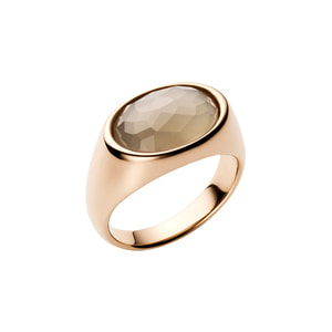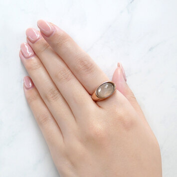 シックな色合いと落ち着いた質感のグレームーンストーンにはジュビリーカットを施し、きらめきをプラス。