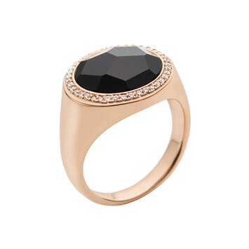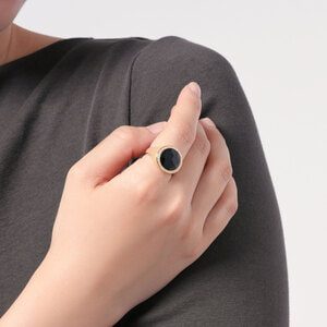 シグネットリング風のボリュームが醸し出す存在感に、繊細な表情がプラスされ、シックでエレガントな手元を演出します。