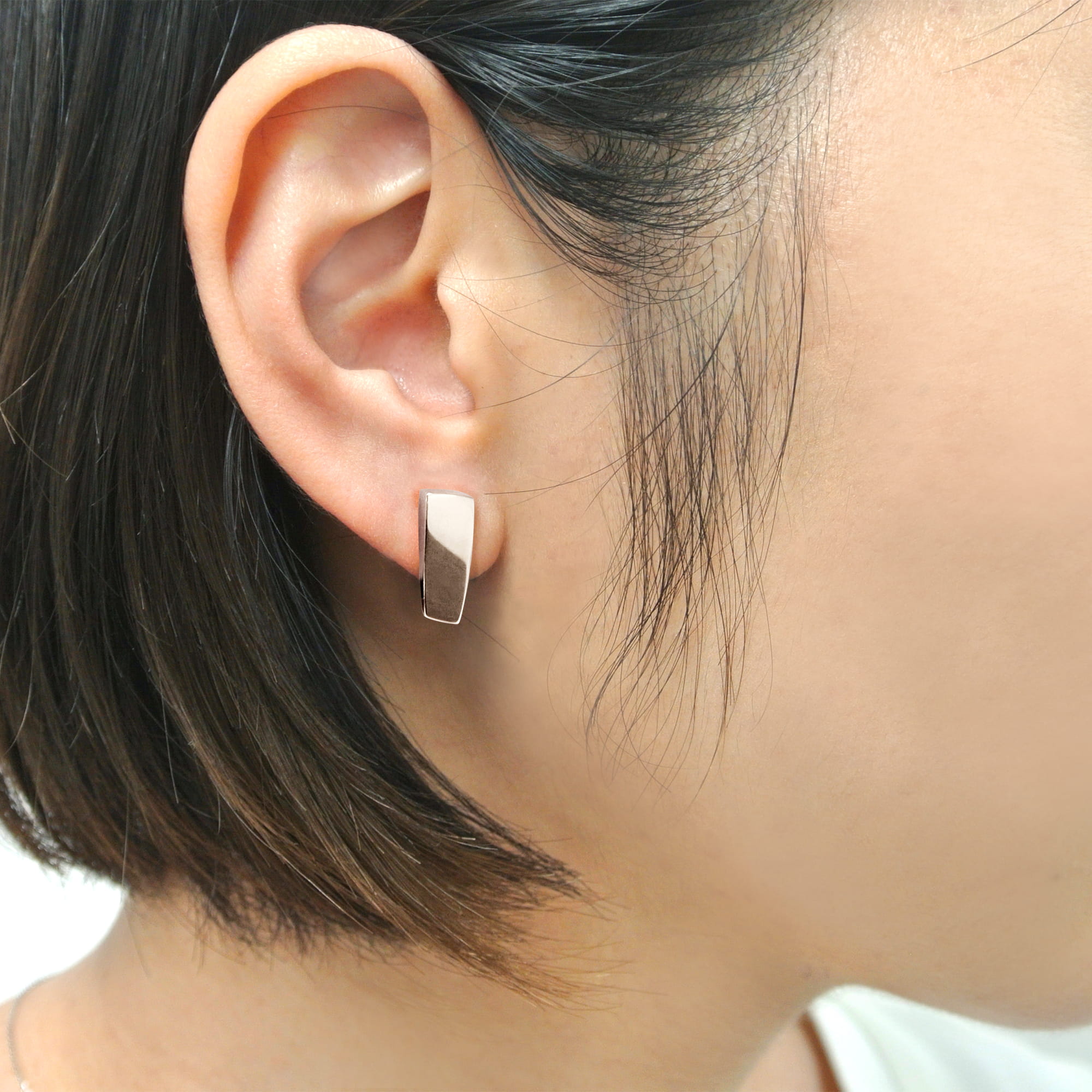 知的さを感じさせるスマートなデザインにホワイトゴールドの洗練された雰囲気が加わったイヤリングは、ビジネスシーンにもおすすめです。