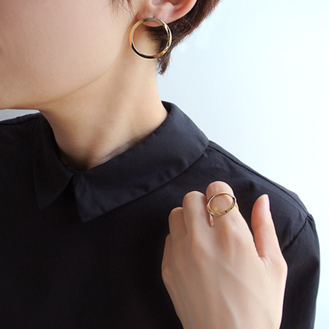 大胆な空間使いで抜け感をプラスしたフープが印象的なデザイン。