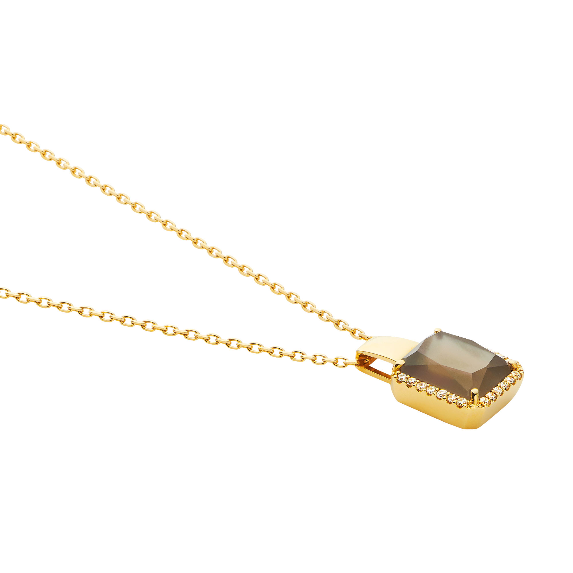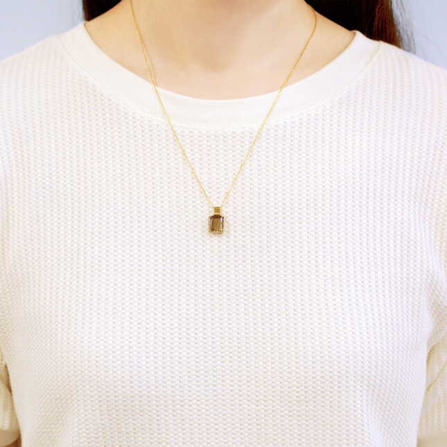 大地の力を持つと言われるスモーキークォーツの淡いブラウン。透かして見えるシェルの虹彩を含み、柔らかなベージュへとニュアンスを変えるカラーが印象的なネックレス。