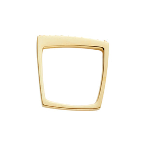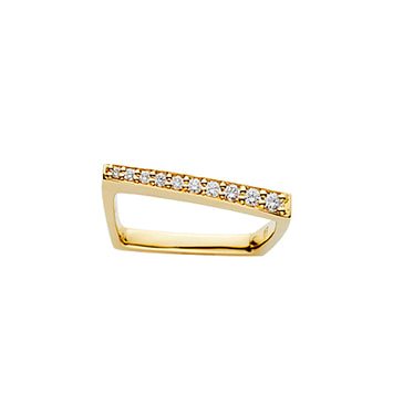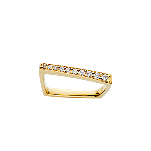 大小のダイヤモンドの煌めきにイエローゴールドの華やかさが加わり、コーディネートの主役にもなれそうなピンキーリング。