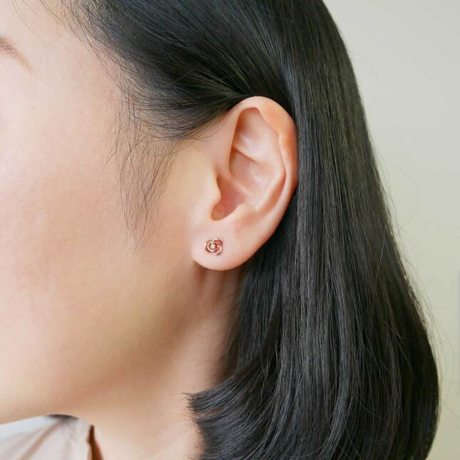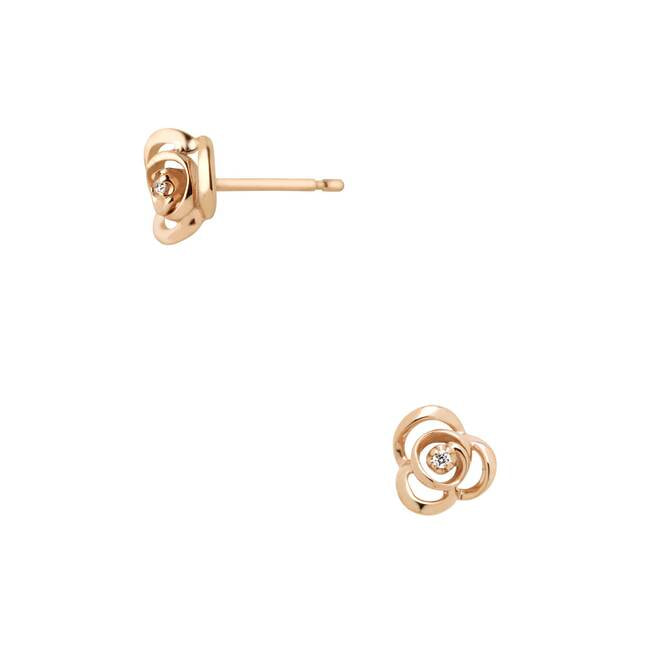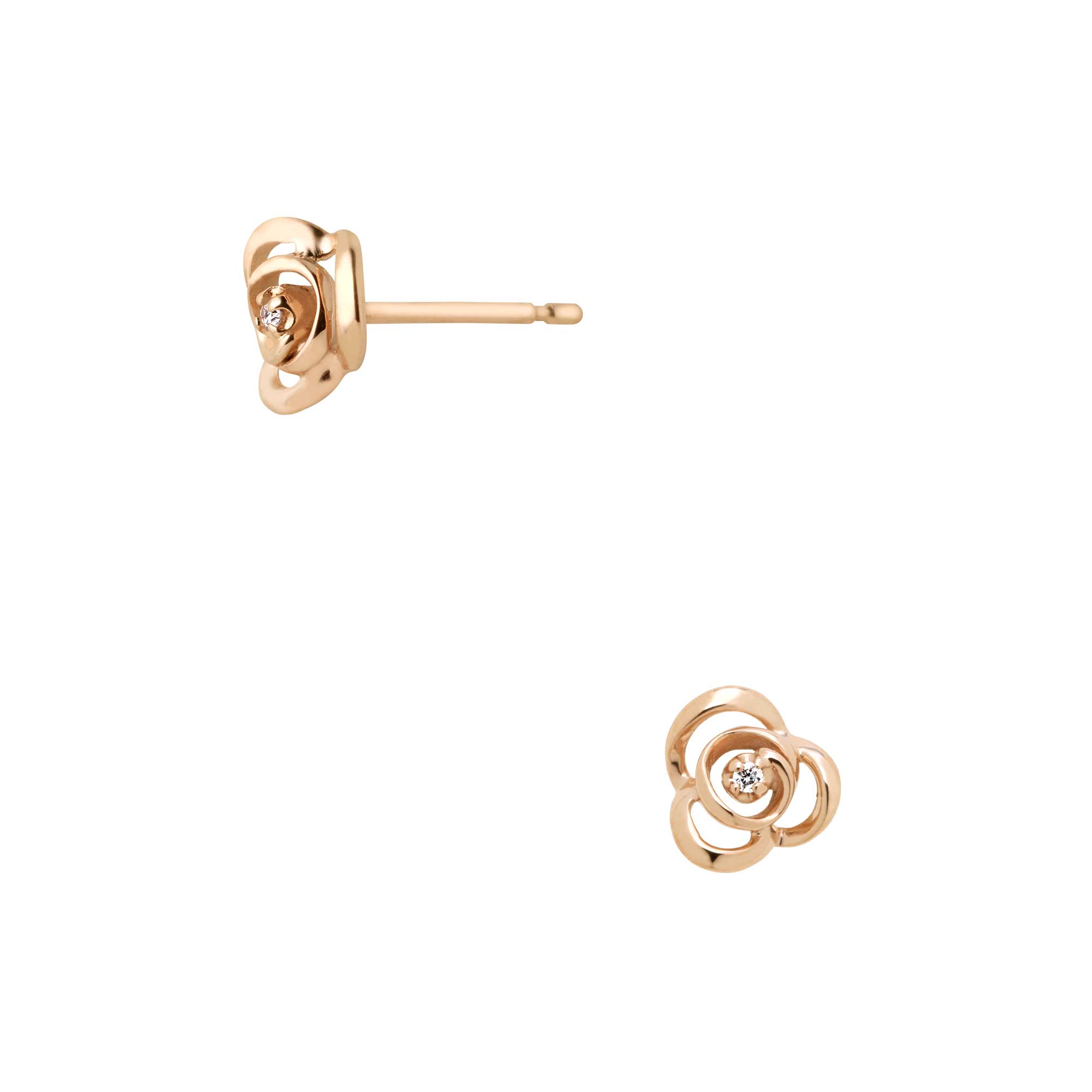 丸みのあるシルエットとピンクゴールドの輝きが可憐なバラの可愛らしさを引き立て、小さなダイヤモンドの輝きがさりげないきらめきをプラスしてくれます。