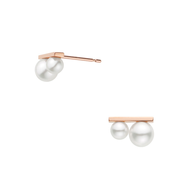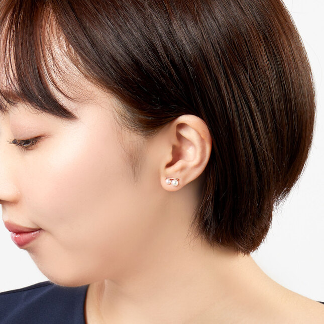 人気のバータイプに大小2石のアコヤパールが配置された、スポーティでありながらどこかリラックス感のある個性的なピアス。