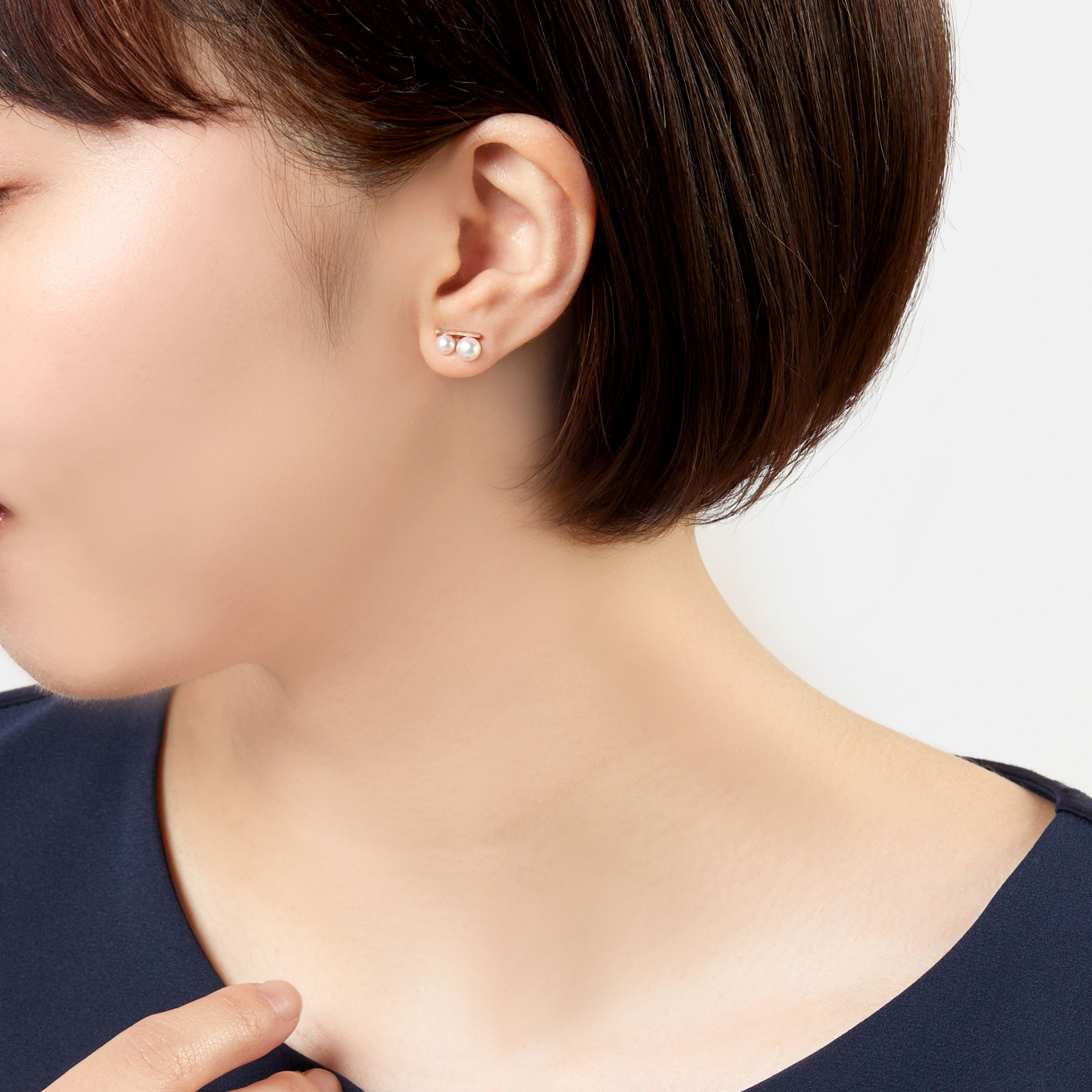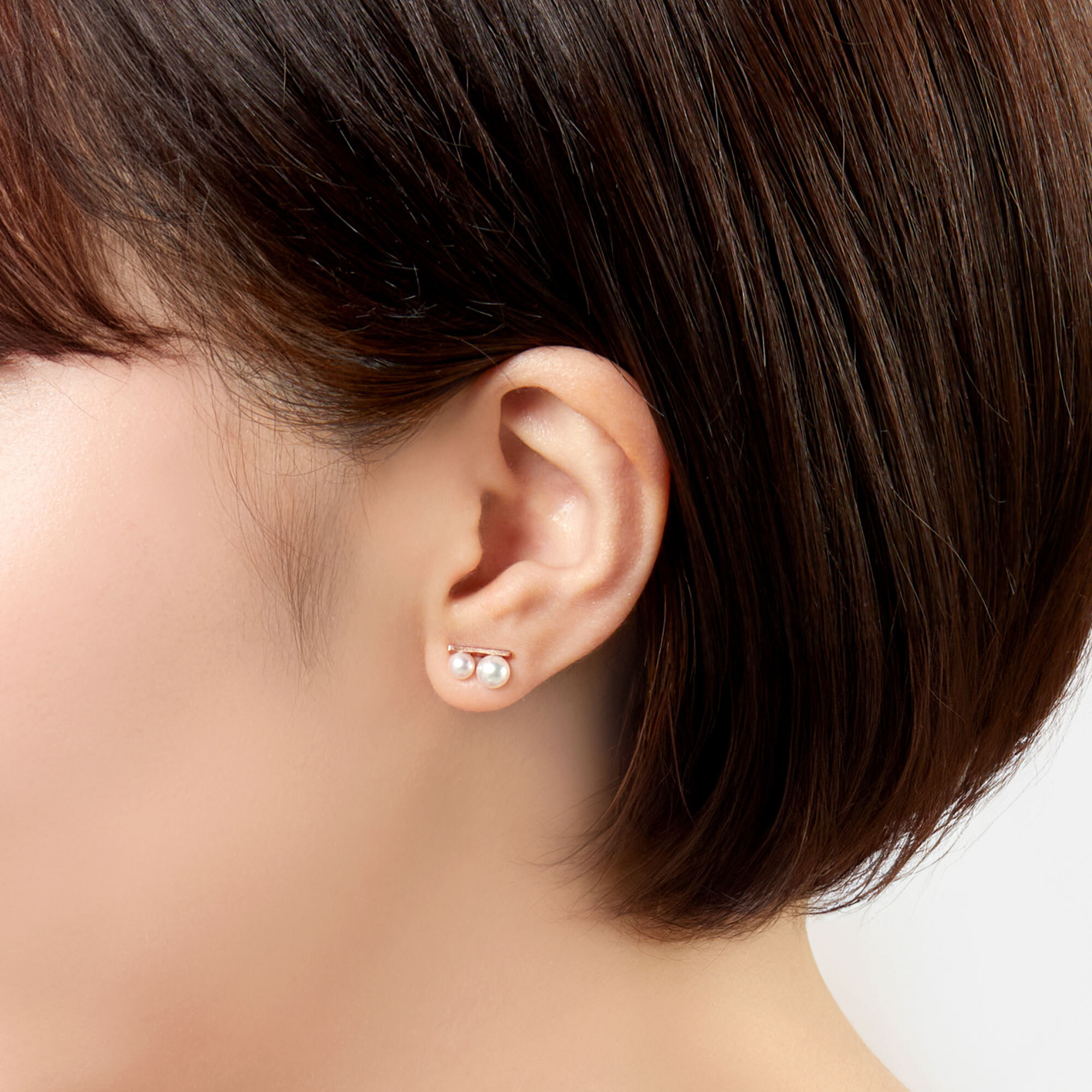 人気のバータイプに大小2石のアコヤパールが配置された、スポーティでありながらどこかリラックス感のある個性的なピアス。