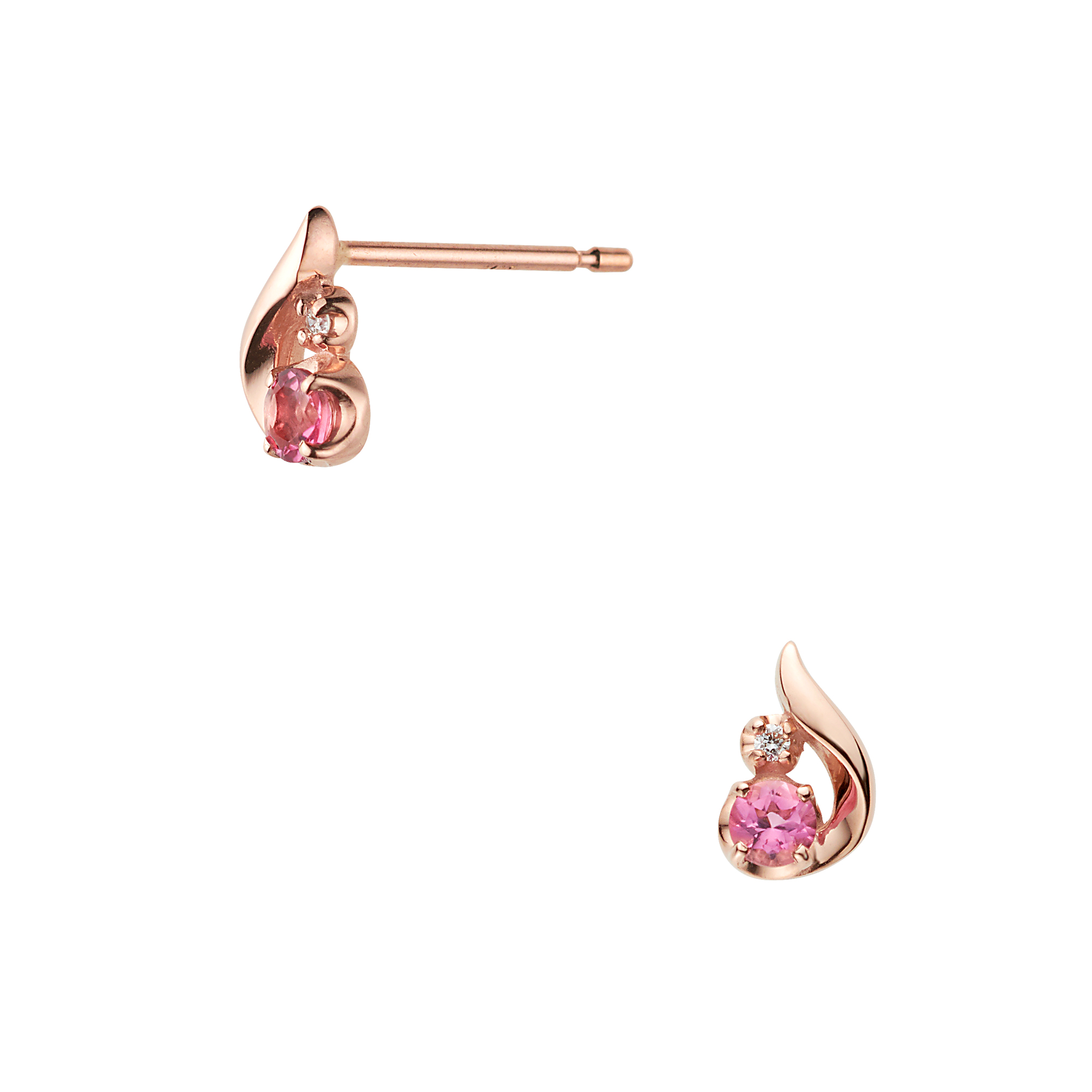 ふっくらとした地金と繊細に輝くダイヤモンドが瑞々しいピンクトルマリンを引き立て、可愛らしくも上質な雰囲気に。