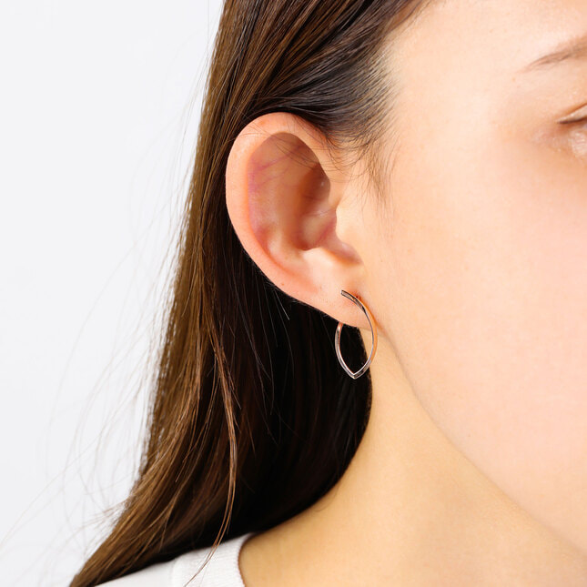 アーモンド型のシルエットがすっきりと大人っぽい雰囲気のピアス。