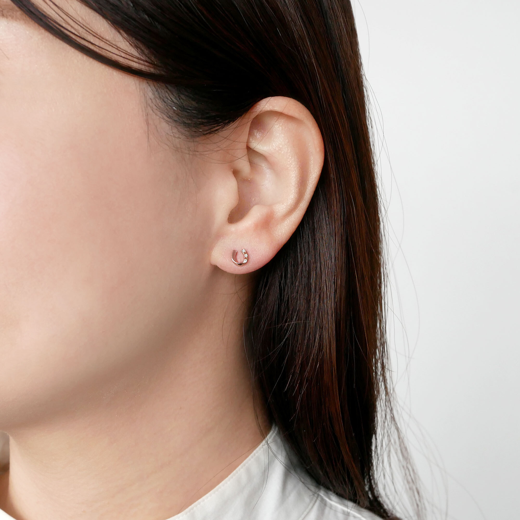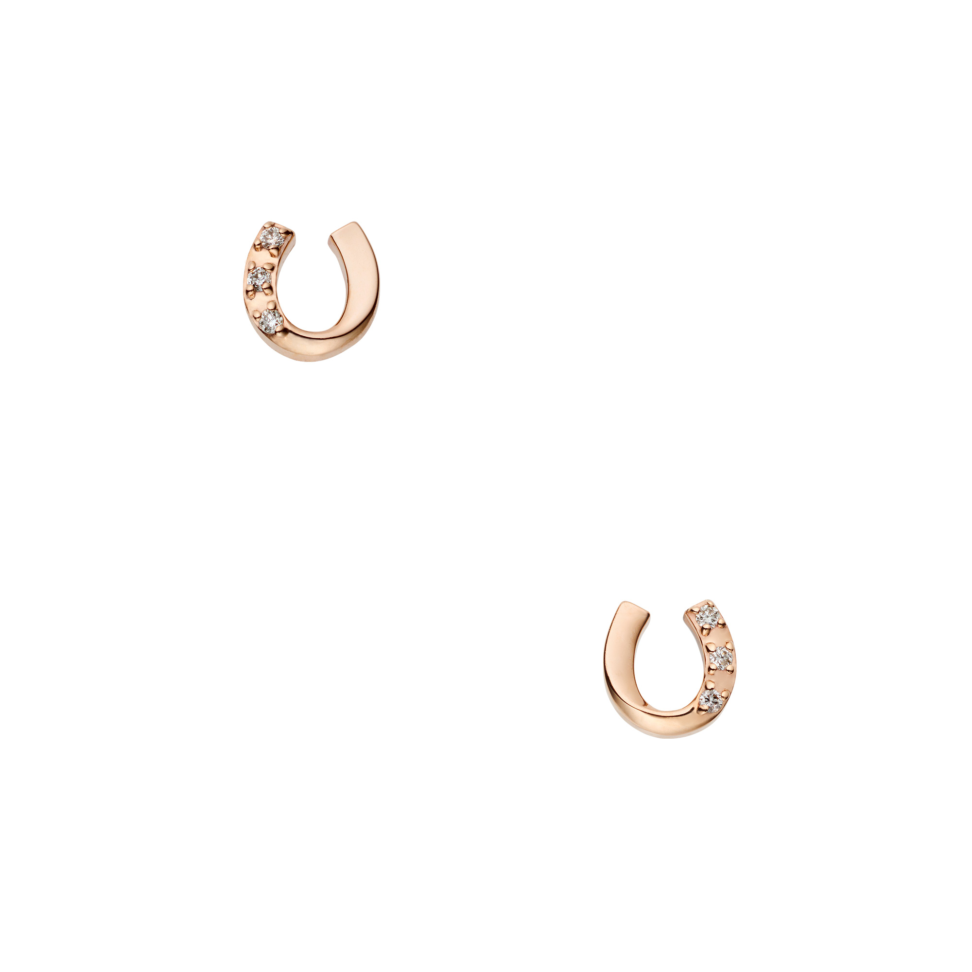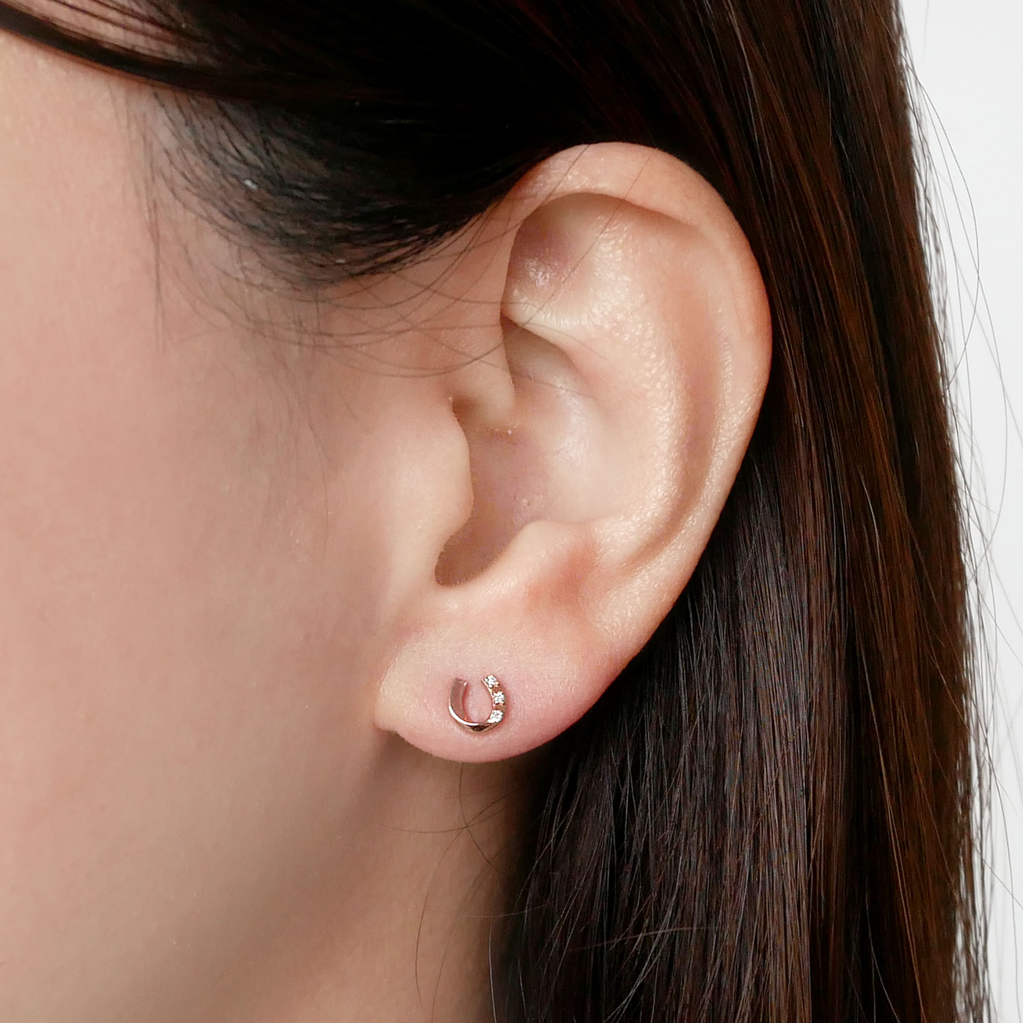 ピンクゴールドとダイヤモンドでホースシュー(馬蹄)を描いたピアス。