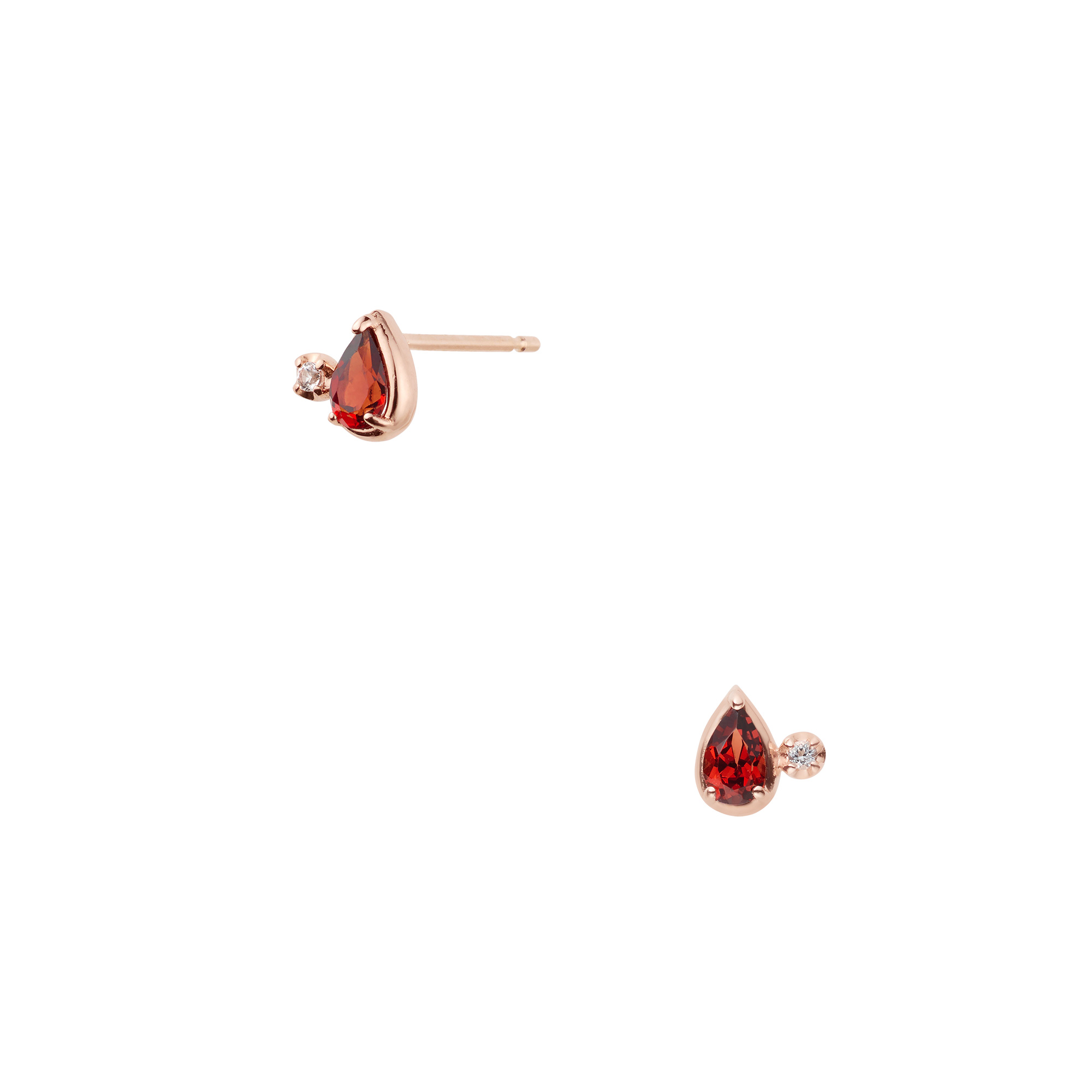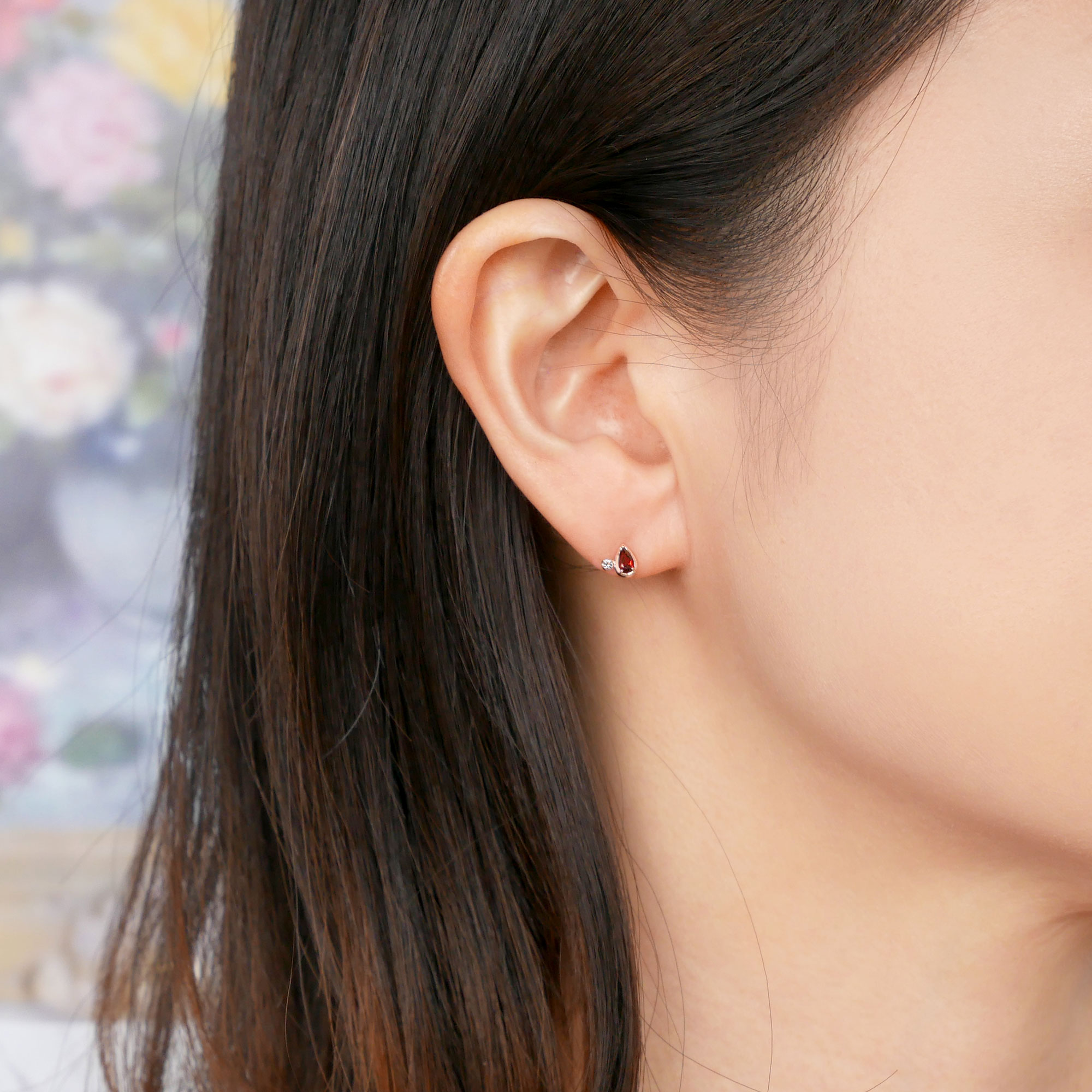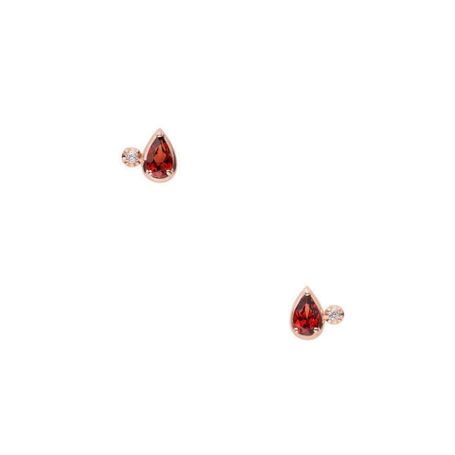 ピンクゴールドに深く美しいガーネットの色合いが引き立つピアス。