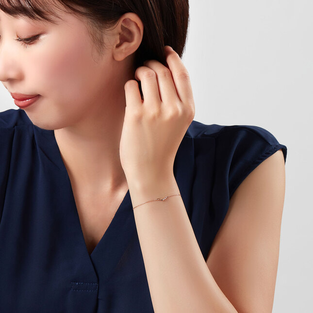 ピンクゴールドの艶感とダイヤモンドのきらめきが、手元に明るく優しい輝きを添えます。