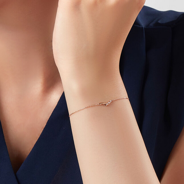美しいカーブを描く2つのラインが、手をつないだかのようなフォルムのブレスレット。