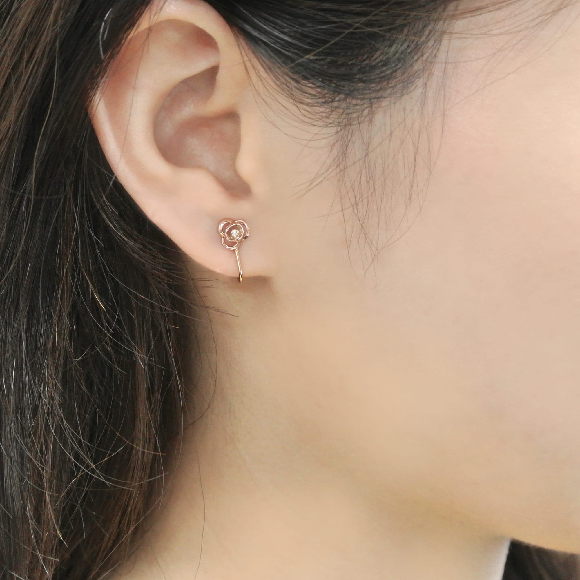 花びらを広げた一輪のバラをモチーフにしたイヤリング。