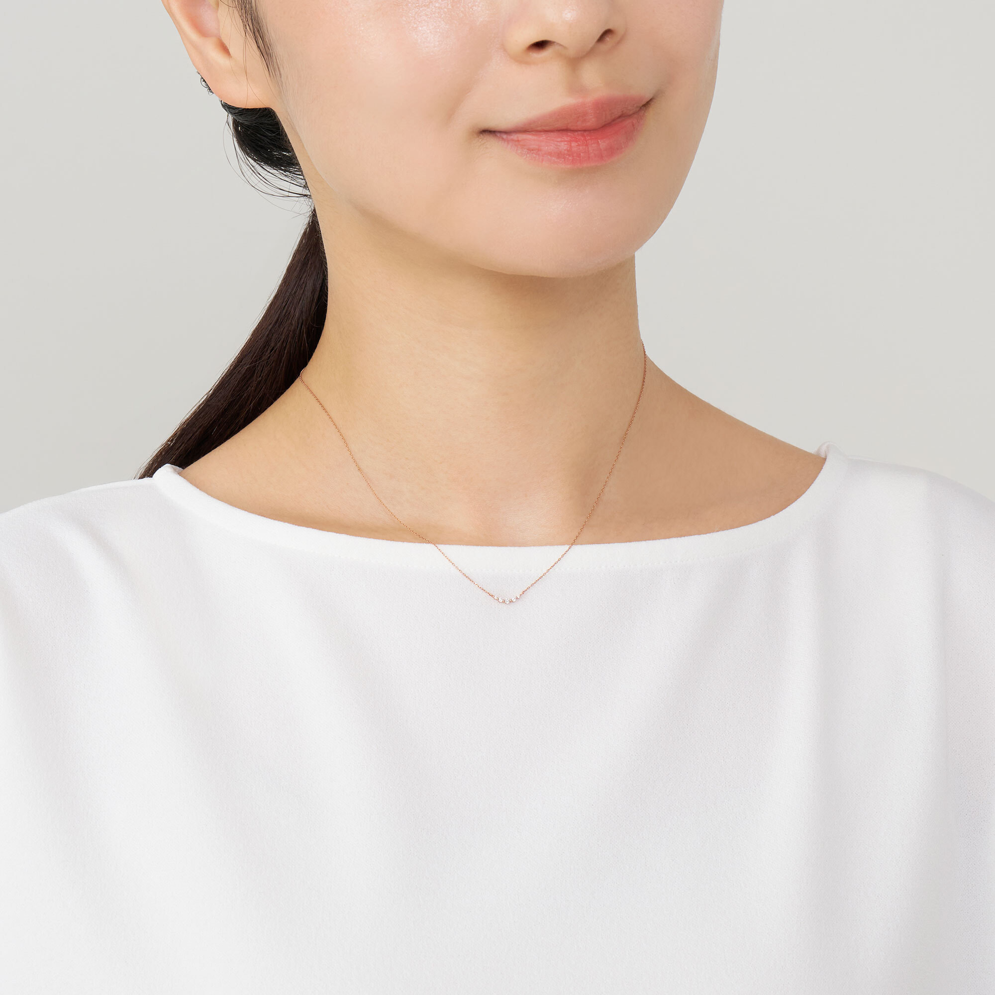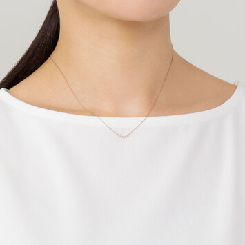 鎖骨に沿ってなじみ、軽やかに着けていただけるUラインのネックレスは、他のネックレスと合わせると、今までのVラインとは違ったレイヤードをお楽しみいただけます。