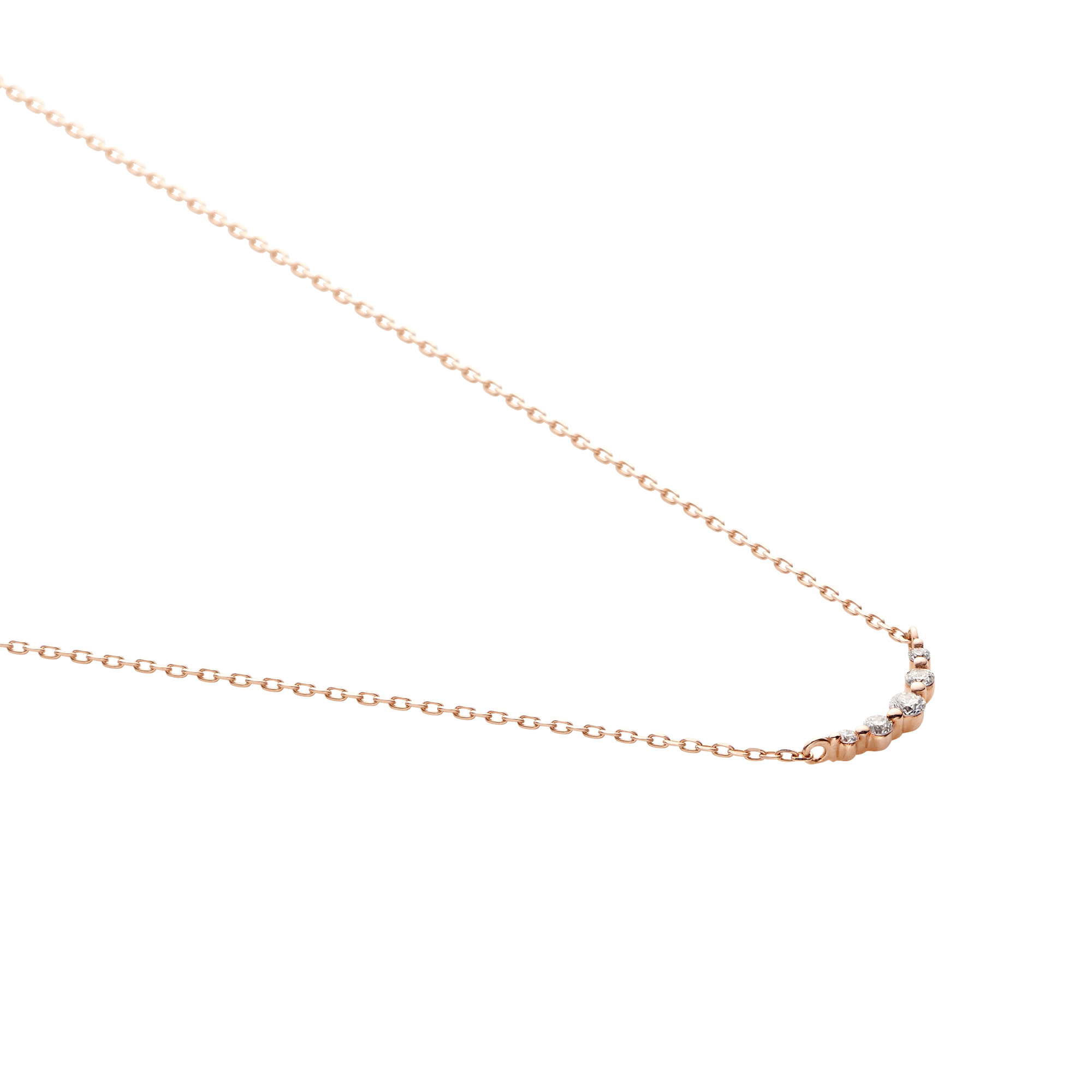 緩やかなU字を描くように、ダイヤモンドのナチュラルな輝きが際立つ人気のエレガントなネックレス。