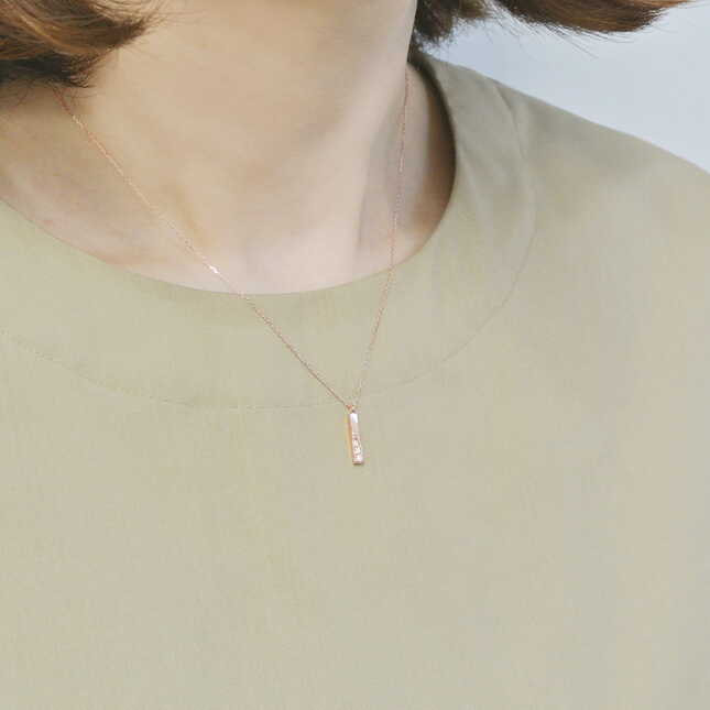 肌なじみの良いピンクゴールドのバータイプネックレス。