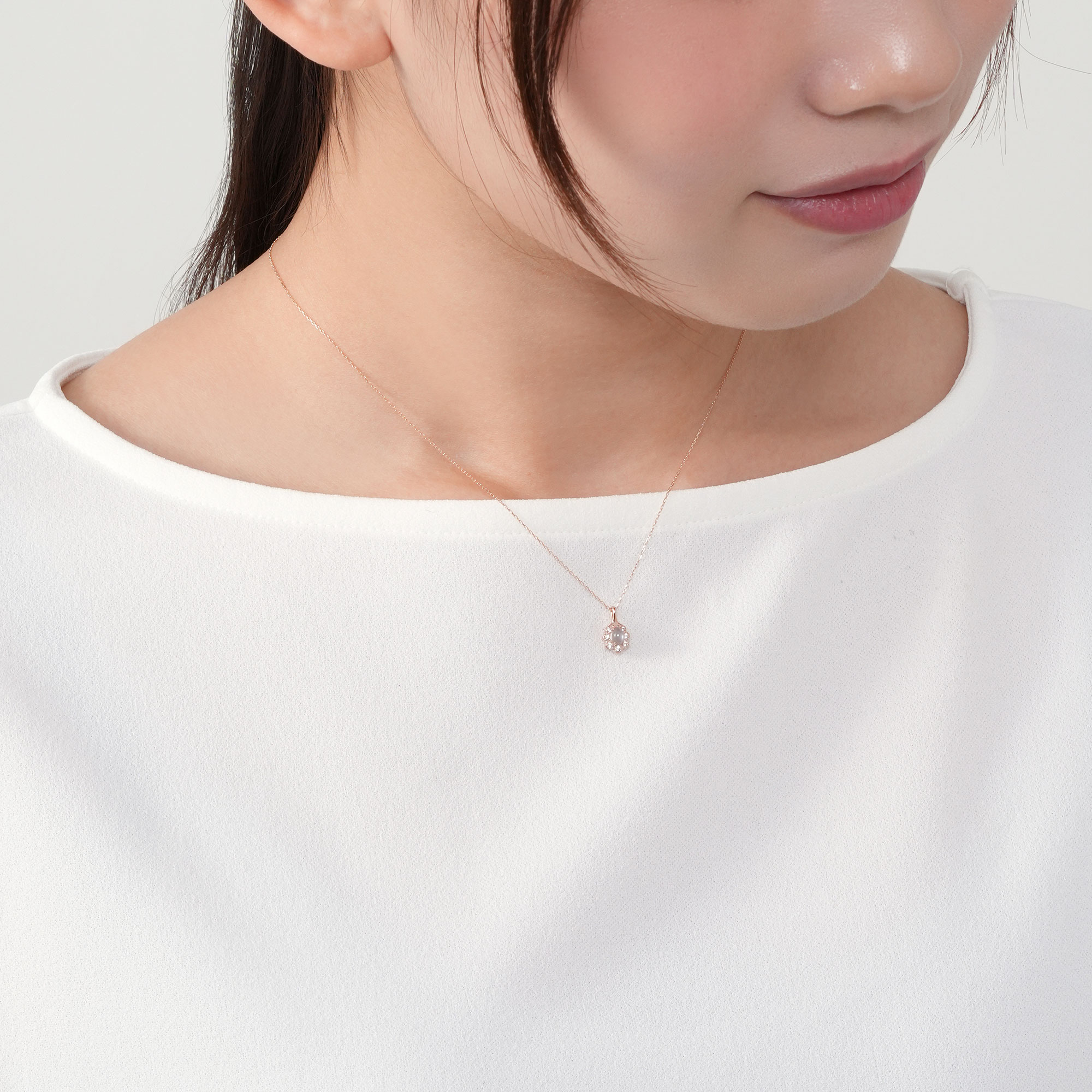 繊細に仕上げたバチカンからホワイトトパーズの粒感を生かしたアウトラインをピンクゴールドで縁取り、可憐な雰囲気を演出。