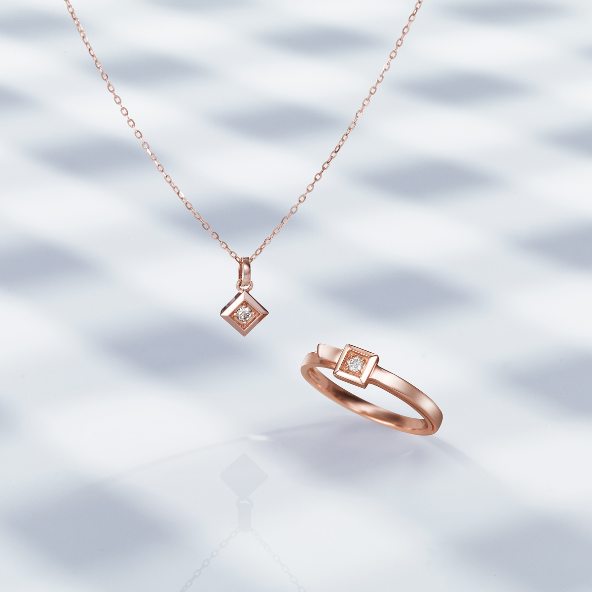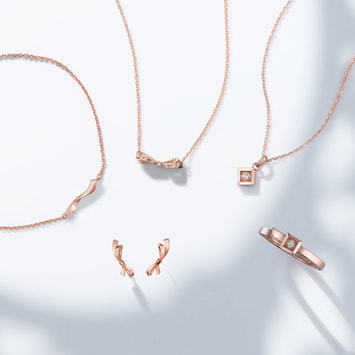 艶やかに磨かれたピンクゴールドの柔らかいカラーは肌の色をきれいに見せる効果も。