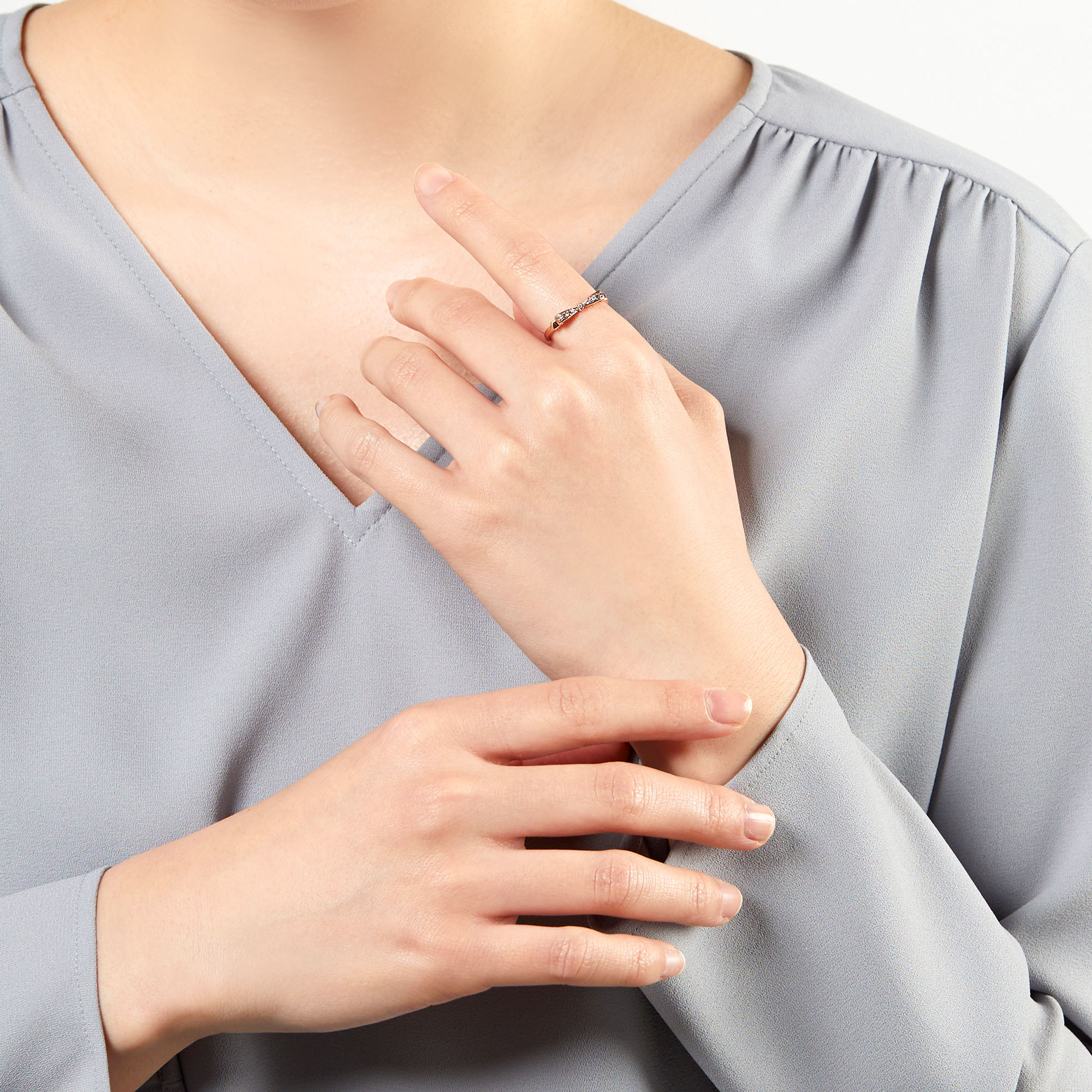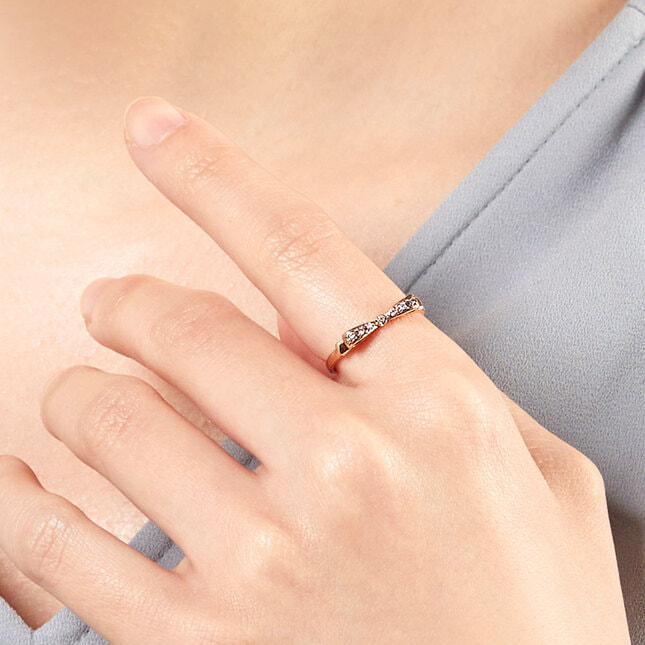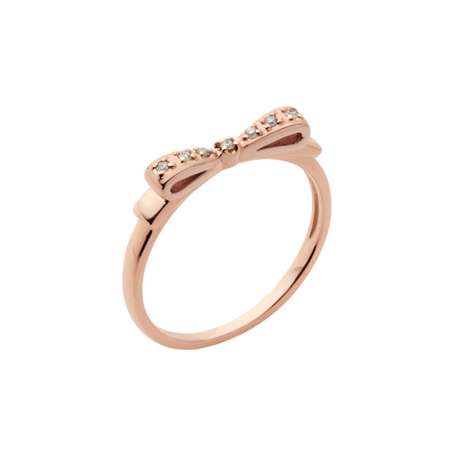 ふっくらと結ばれたリボンにあしらわれた、繊細な輝きのダイヤモンドが、スウィートなデザインに大人っぽさをプラス。