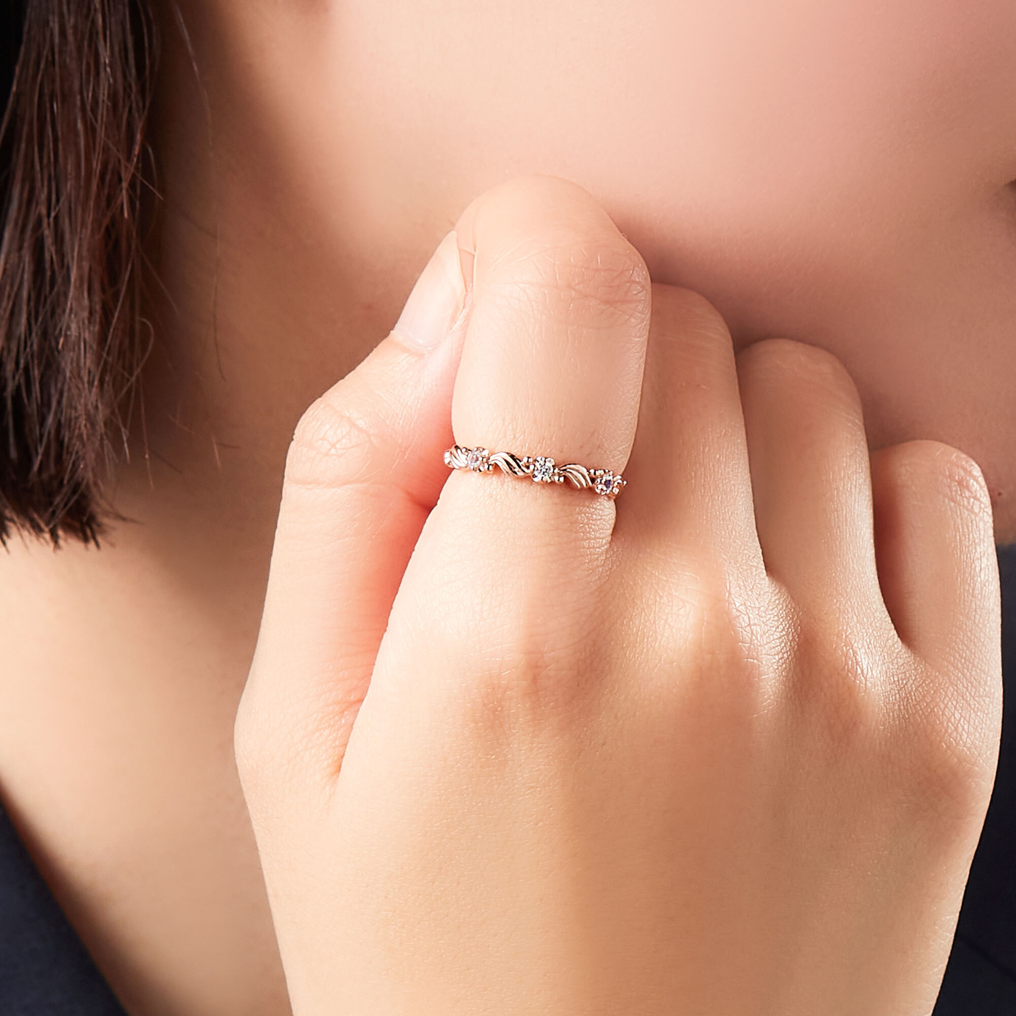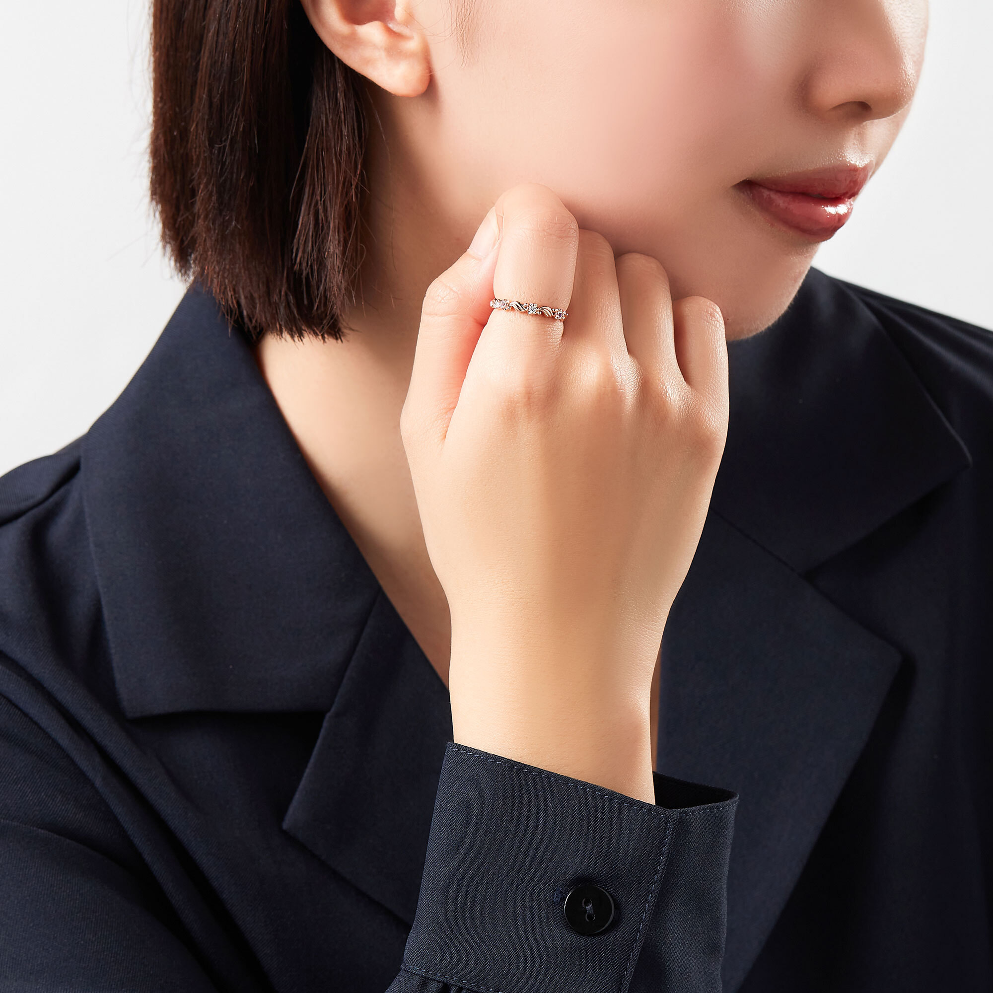 繊細な輝きと細かな細工がアンティークジュエリーを思わせる佇まいのリング。