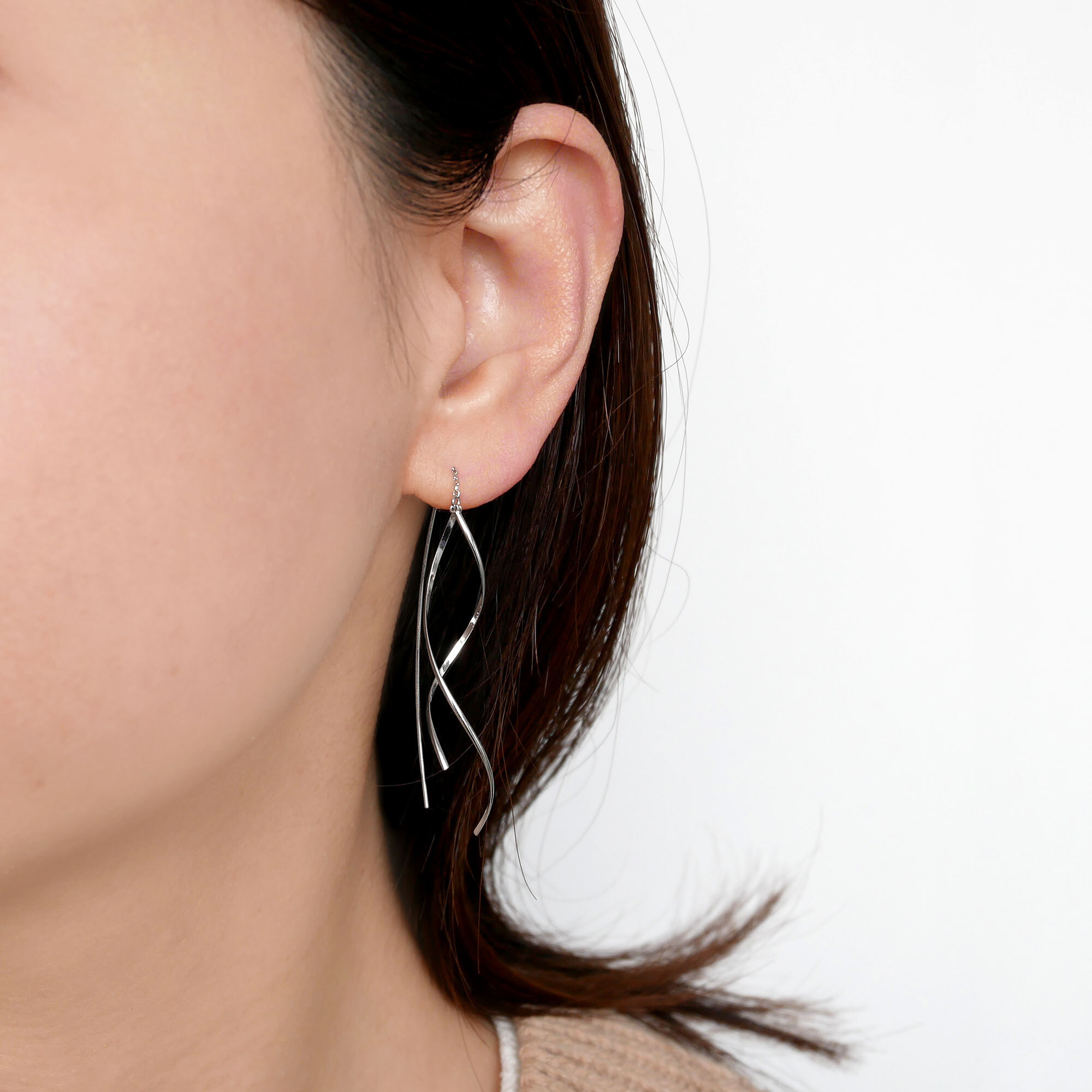 やわらかなカーブを描くモチーフが揺れるモダンな印象のチェーンピアス。