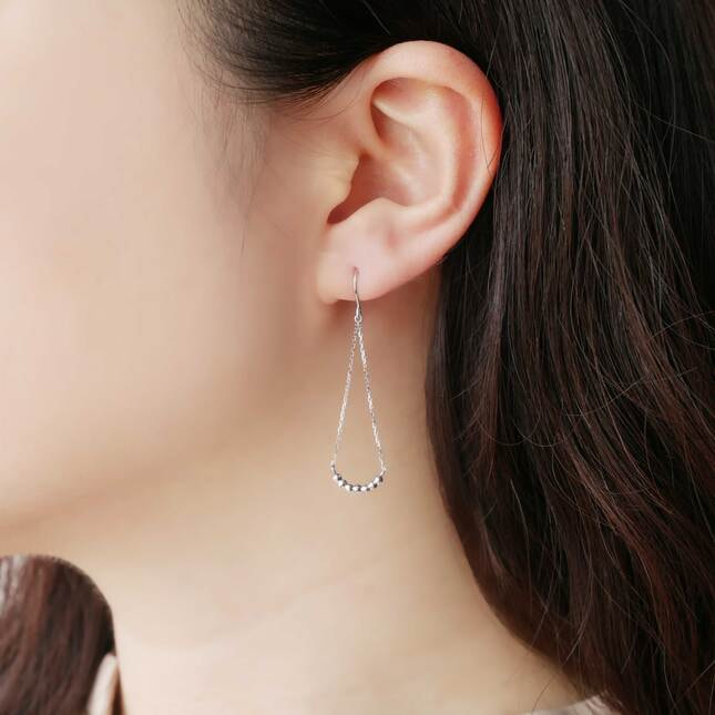 程よい長さと細身のシルエットが、凛とした大人の女性を演出し、ホワイトゴールドはクールでエレガントな印象を与えます。