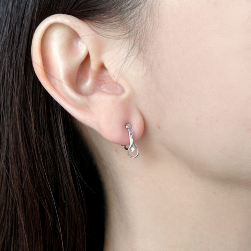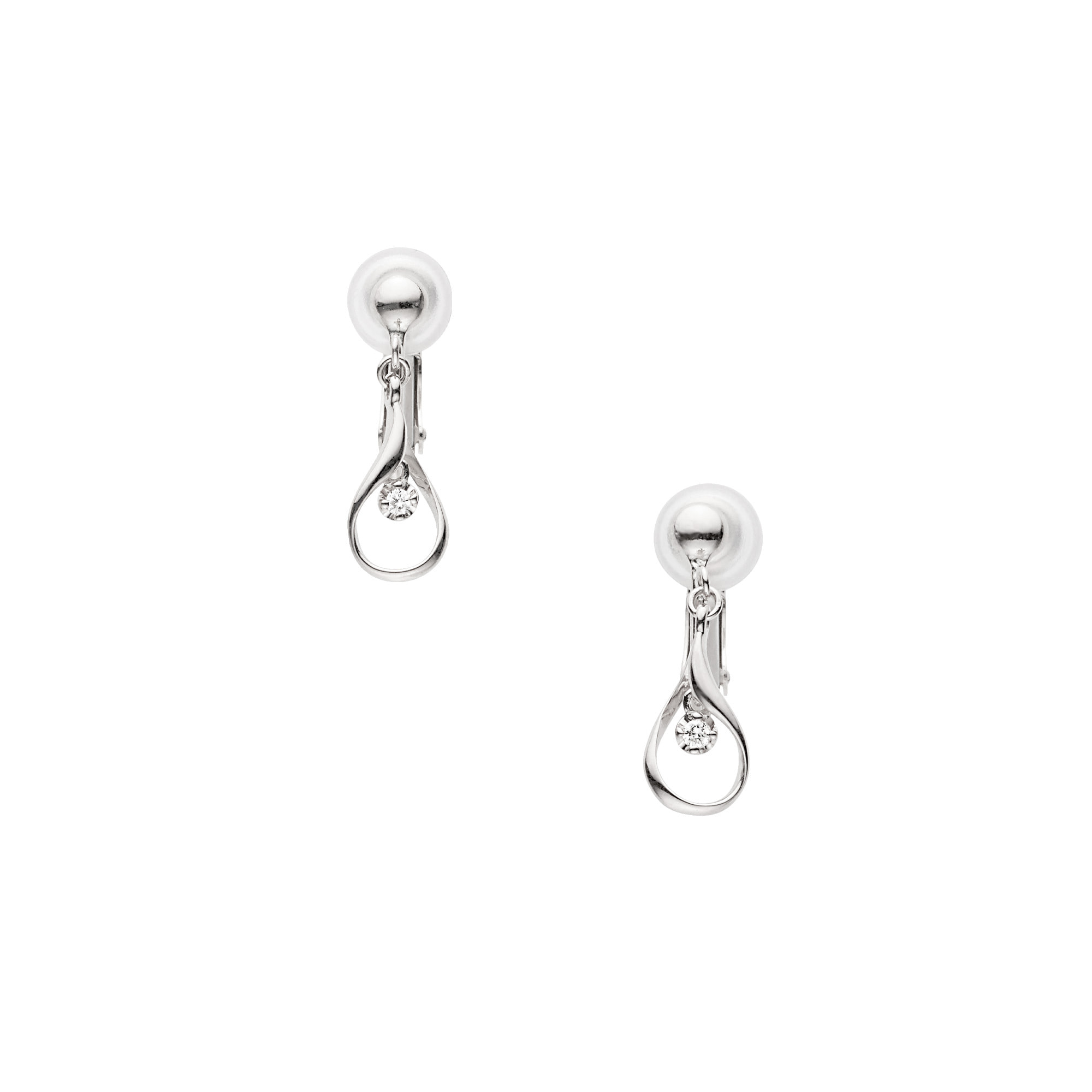 つややかなホワイトゴールドで描いた人気のしずくモチーフにダイヤモンドのチャームが揺れるイヤリング。