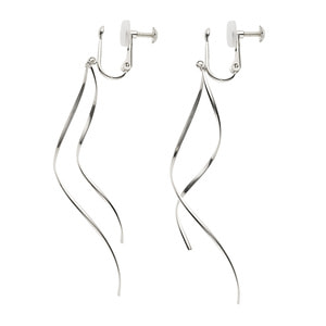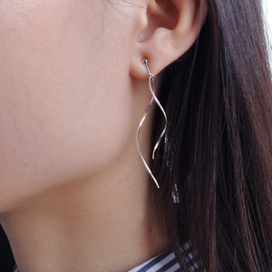 ひねりを加えたホワイトゴールドのラインが風に踊るような空気感を演出するロングタイプのイヤリング。