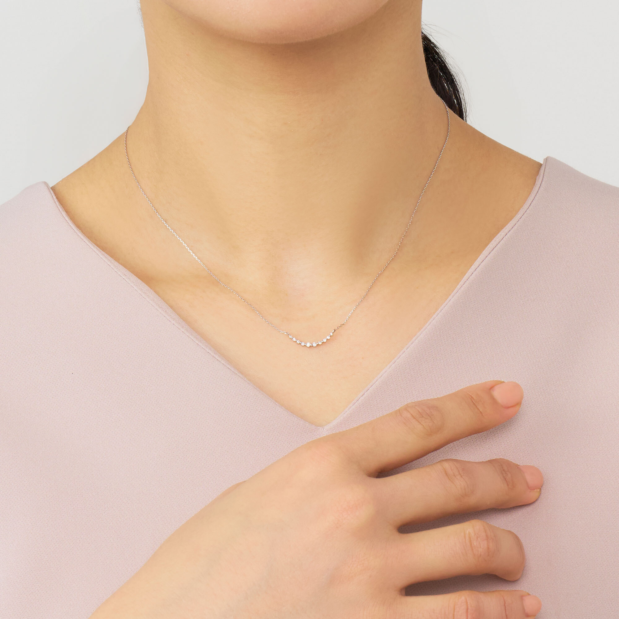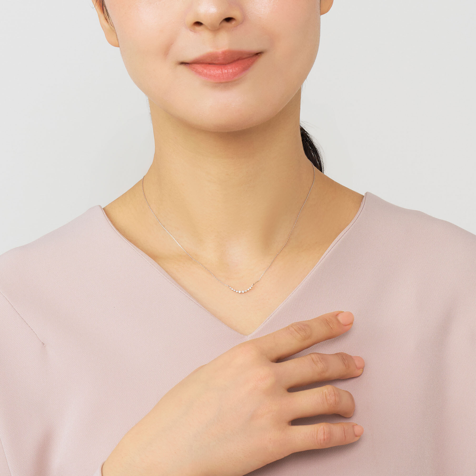 緩やかなU字を描くように、ダイヤモンドのナチュラルな輝きが際立つ人気のエレガントなネックレス。