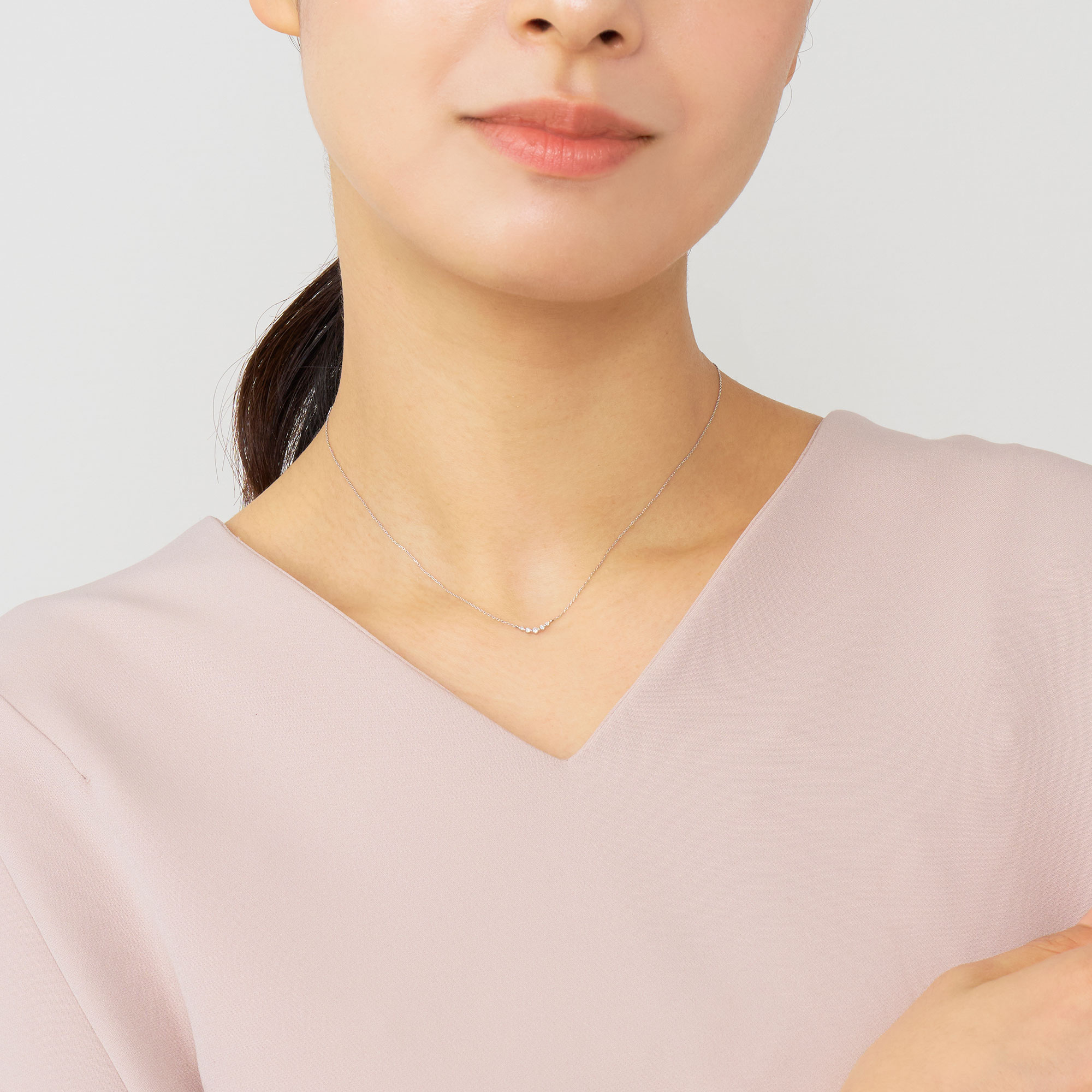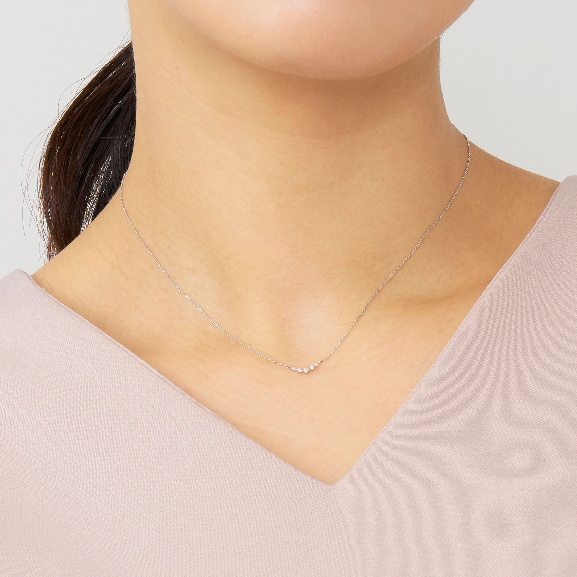 緩やかなU字を描くように、ダイヤモンドのナチュラルな輝きが際立つ人気のエレガントなネックレス。