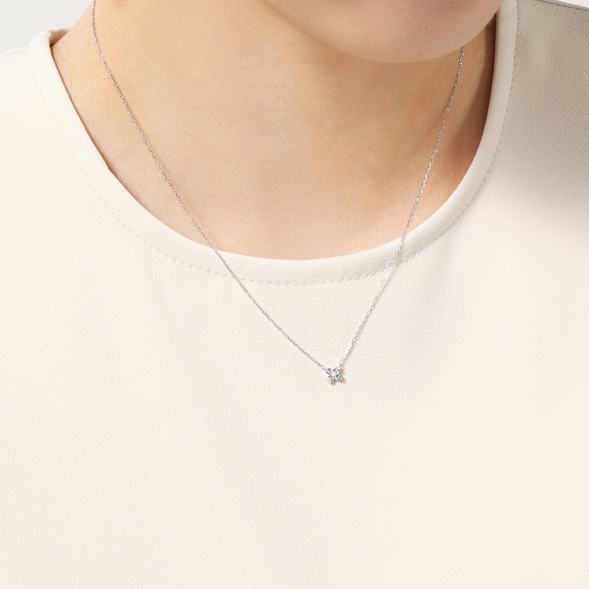 瑞々しい花びらを、うるうると輝くホワイトトパーズの透明感で表現した、フェミニンで柔らかい表情のネックレス。