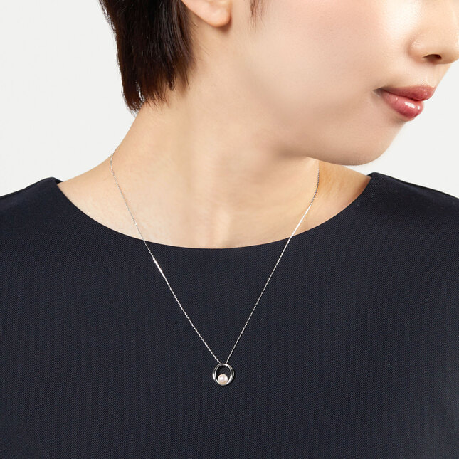 ゆるやかにカーブしたフォルムとアコヤパールのまろやかな光沢が響き合い、優しい雰囲気を纏わせます。