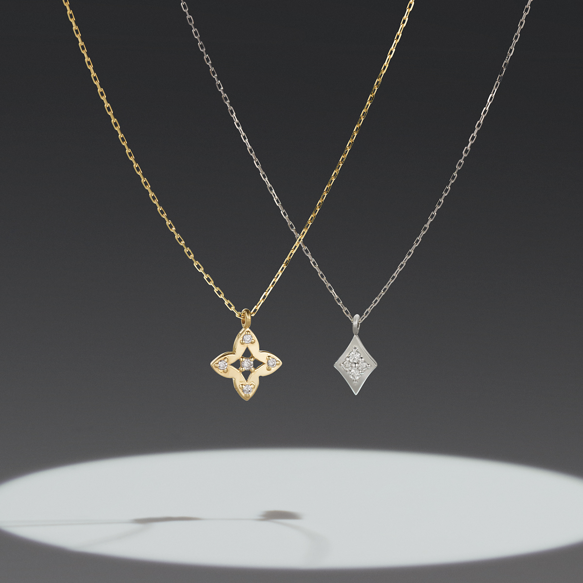 きらめく光のシルエットをモチーフにしたダイヤモンドネックレス。