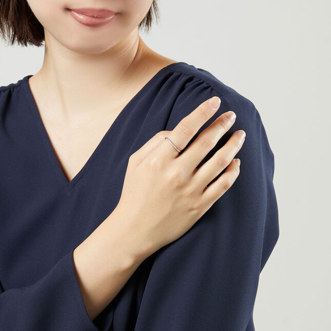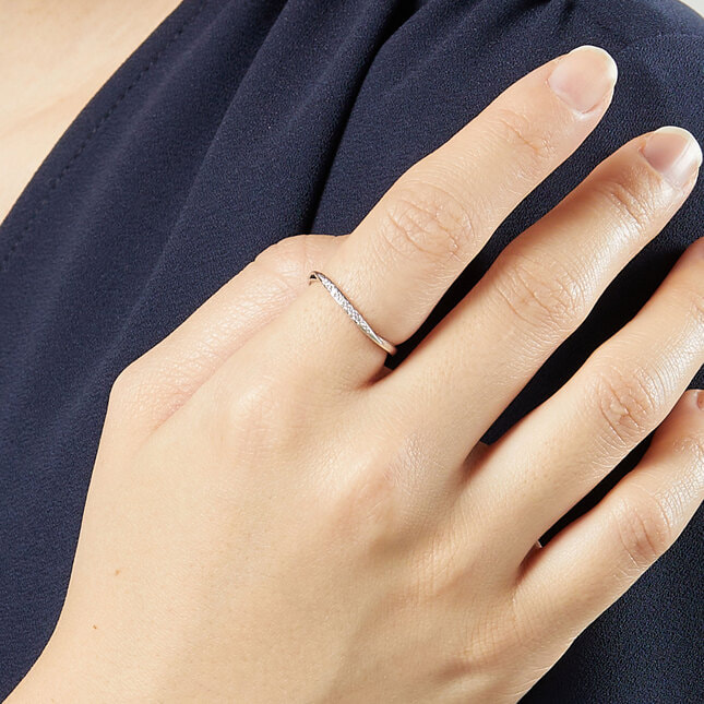 ゆるやかなウェーブラインが手元に優しい印象を演出するリング。